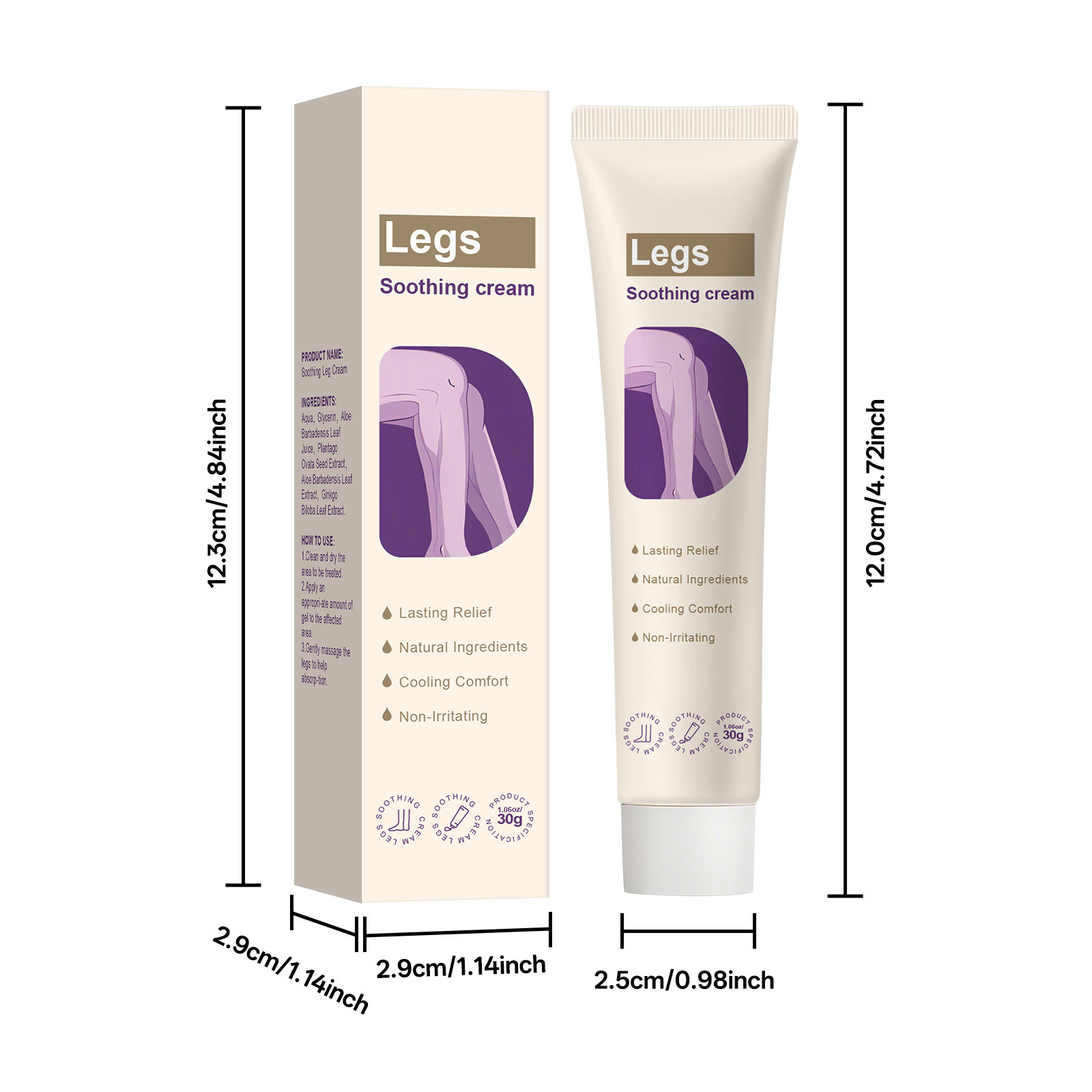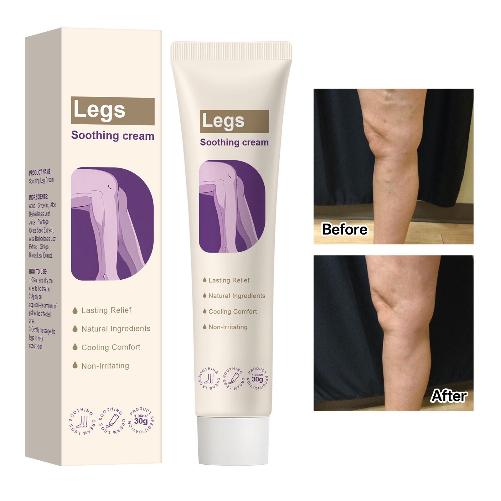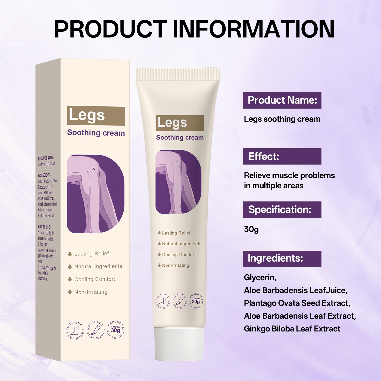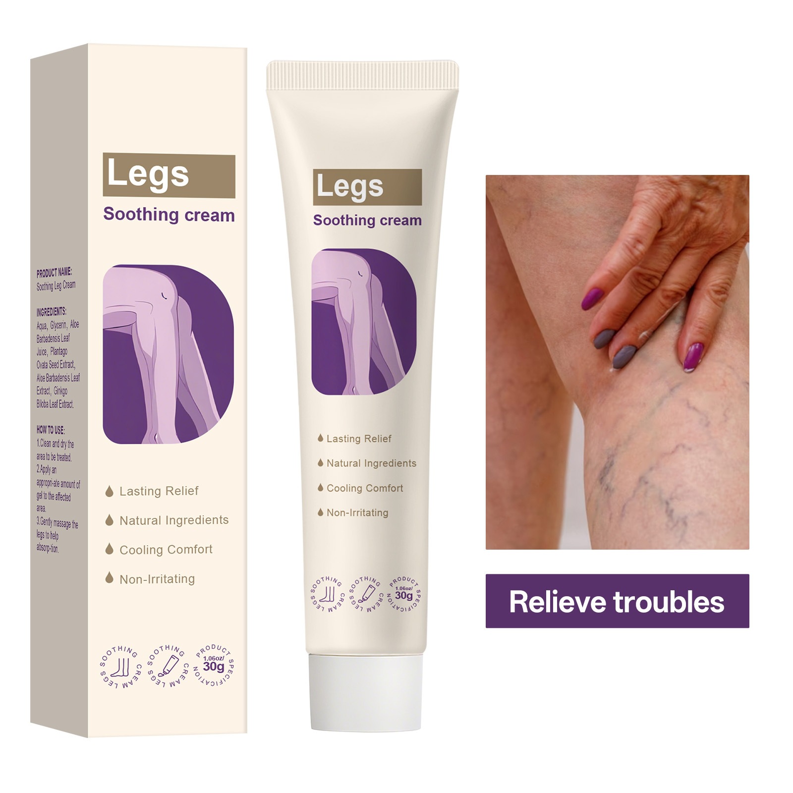 跨境无标腿部护理霜清爽舒缓滋润保湿缓解不适草本配方舒缓霜30g