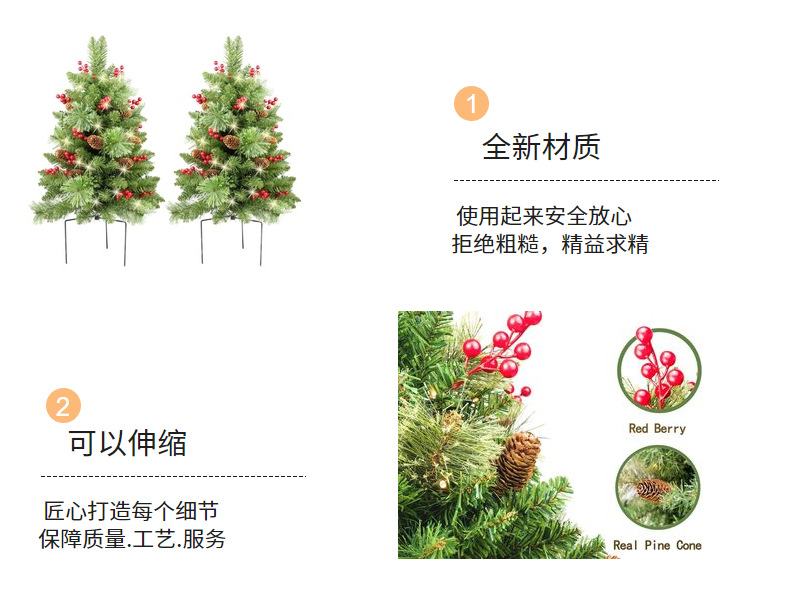 亚马逊跨境亚马逊热销圣诞节户外庭院沙滩装饰绑灯PVC圣诞地插树