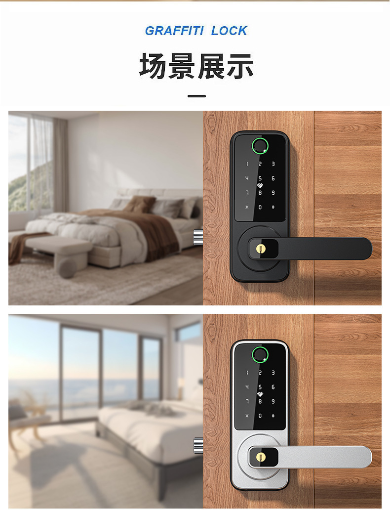 跨境通通锁智能锁家用防盗门密码锁电子锁密码锁酒店公寓刷卡门锁