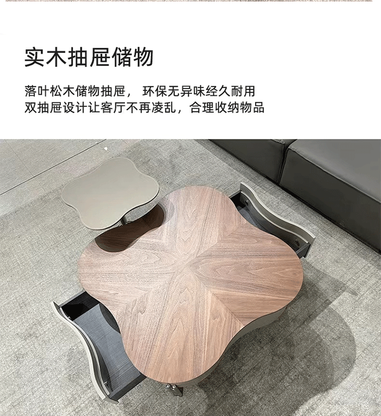 新款胡桃木中古奶油风异形茶几组合客厅家用现代简约设计师花瓣形