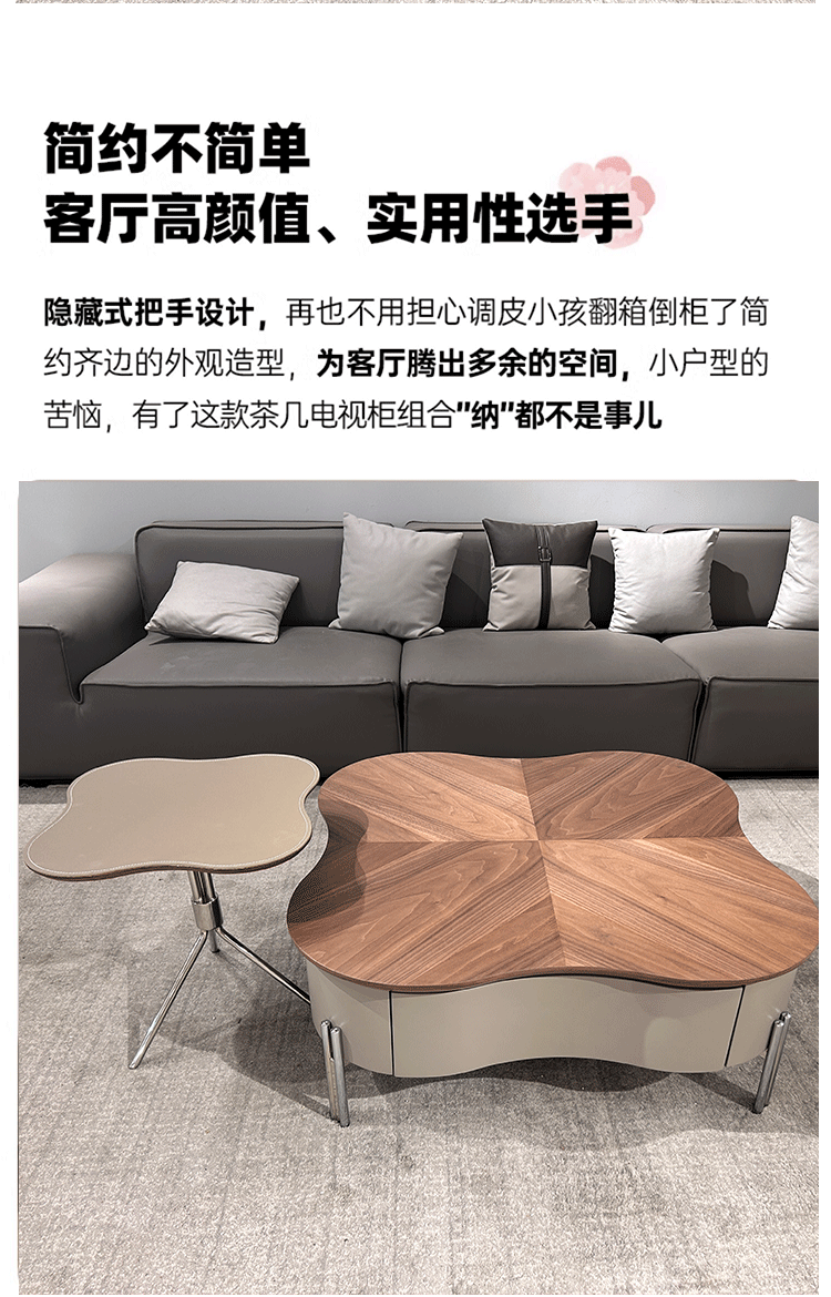 新款胡桃木中古奶油风异形茶几组合客厅家用现代简约设计师花瓣形,批发价,价格:1380,厂家直销,新款胡桃木中古奶油风异形茶几组合客厅家用现代简约设计师花瓣形,免费拿样。
