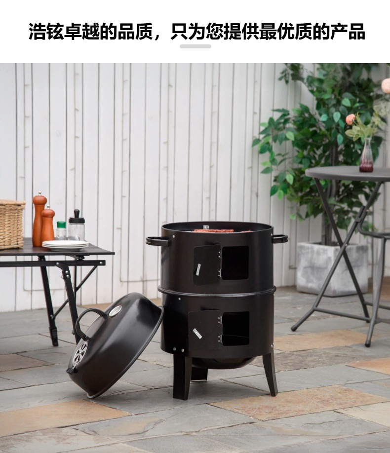 浩铉三合一烟熏圆形烧烤炉户外庭院烤肉烧烤炉柴火炉跨境便携碳炉