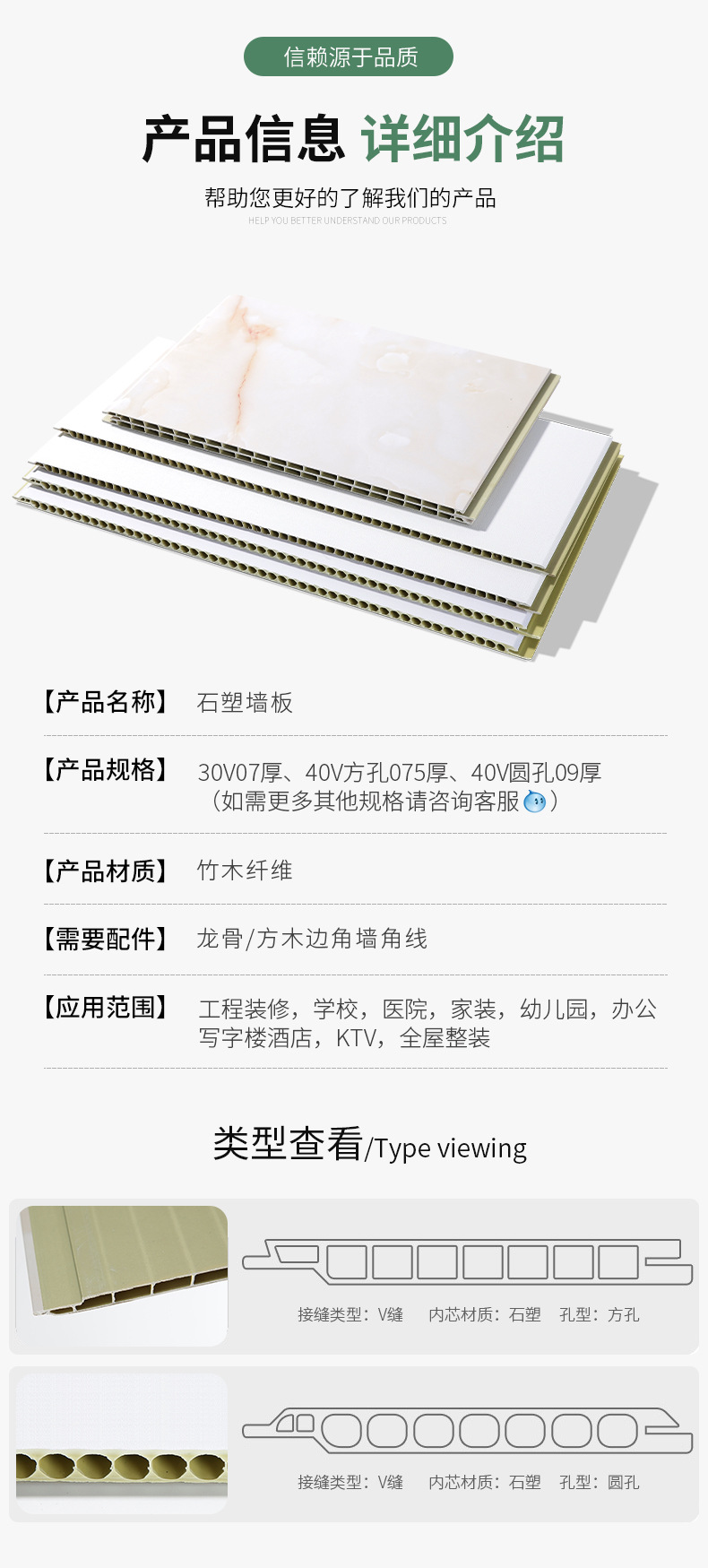 批发石塑集成墙板平缝V缝PVC护墙板吊顶板现代简约装饰装修墙板