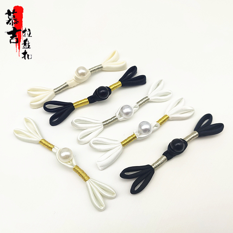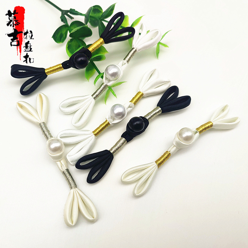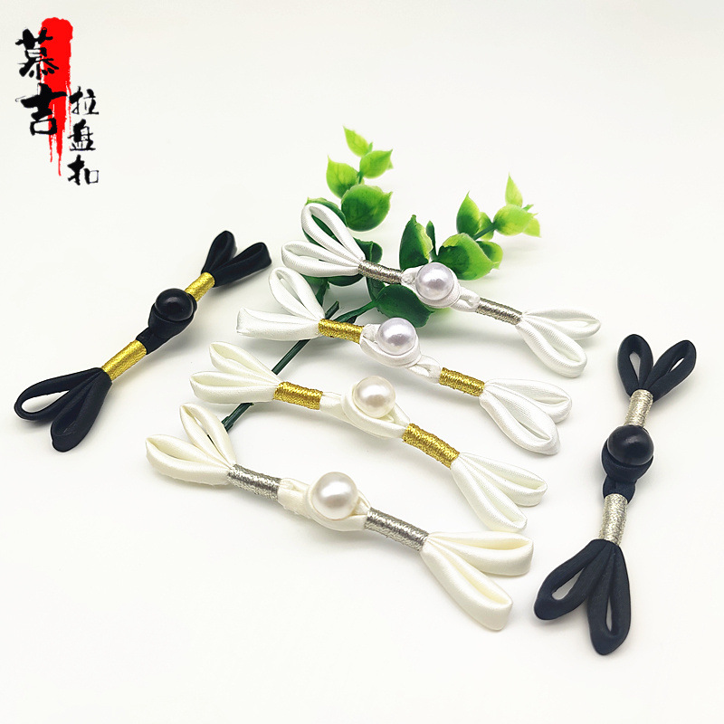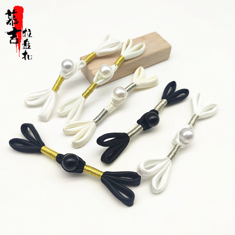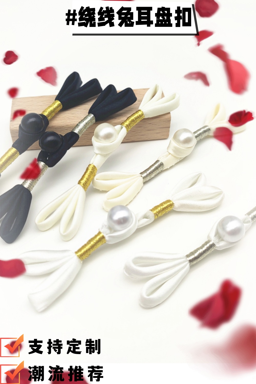 旗袍盘扣新中式国潮风唐装汉服玉珠蝴蝶布扣手工绕金银丝兔耳纽扣