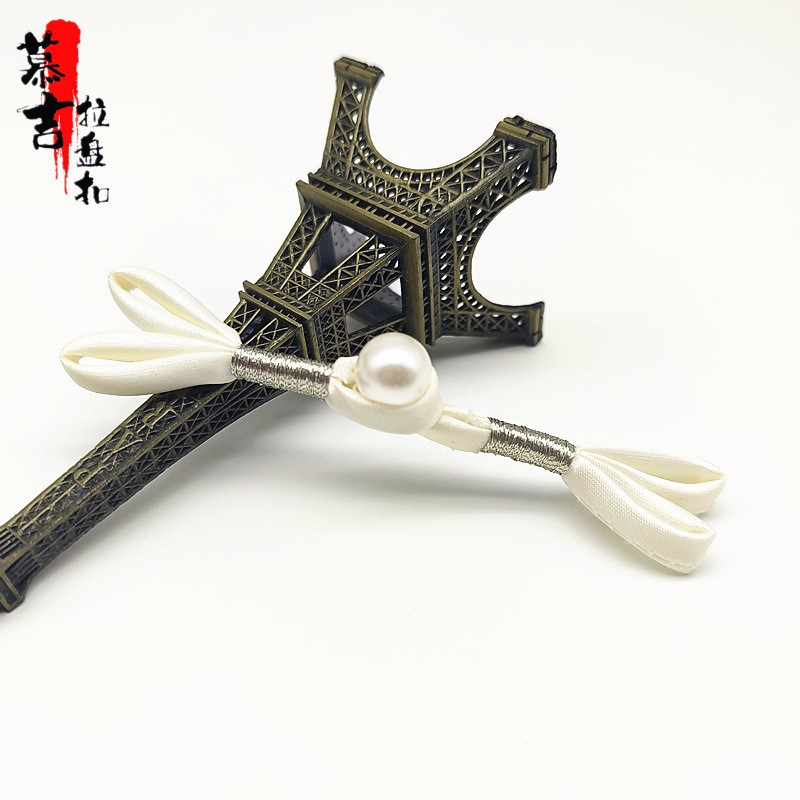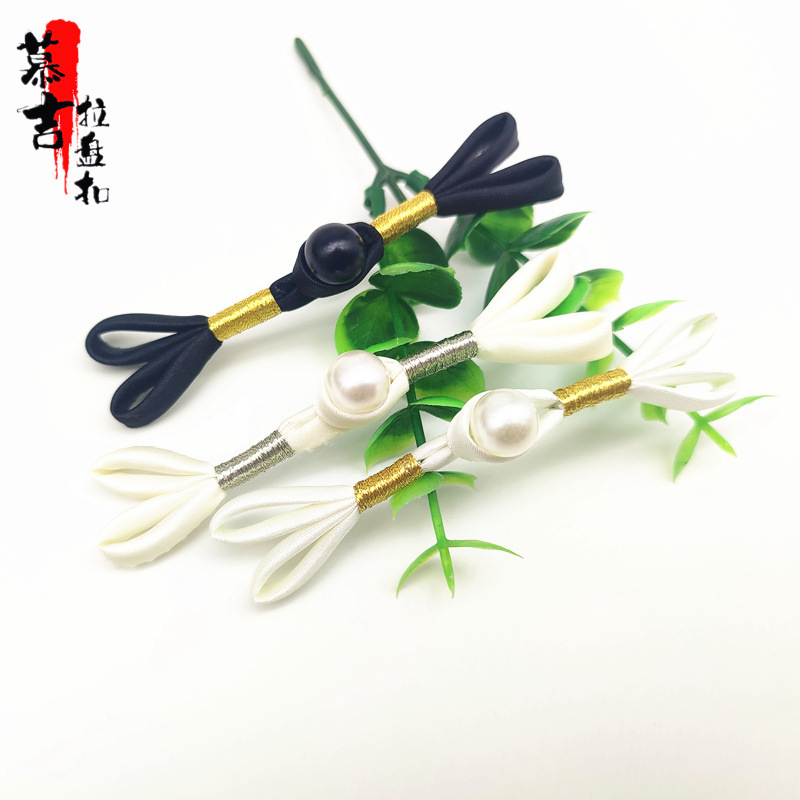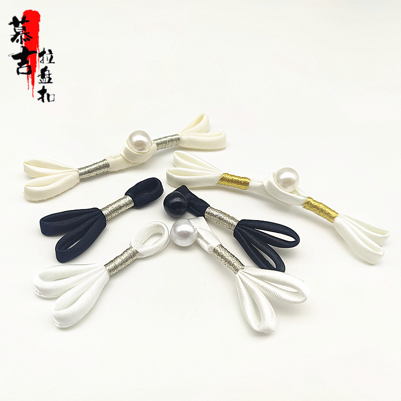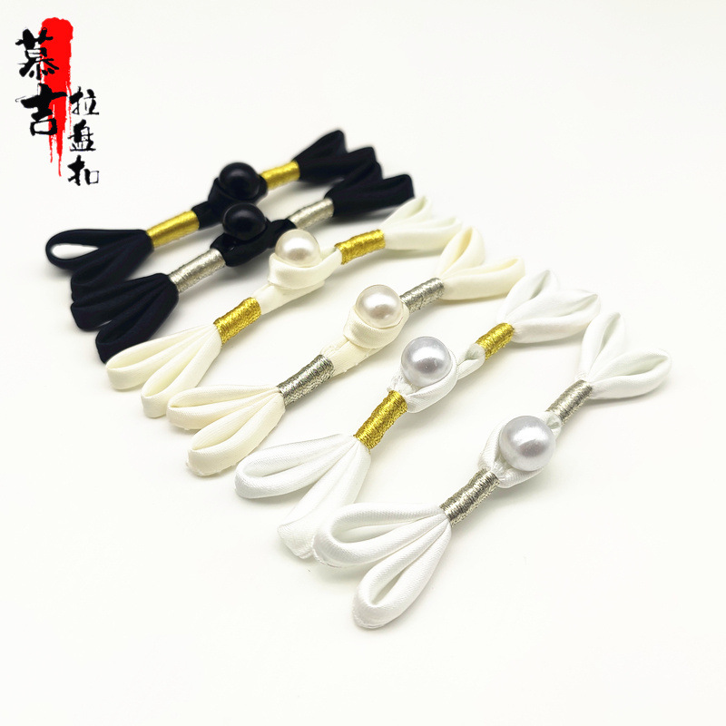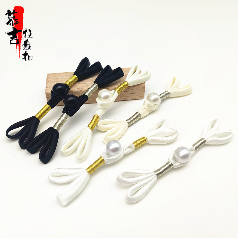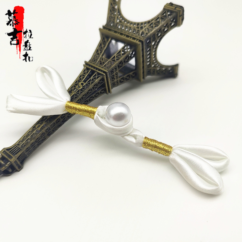 旗袍盘扣新中式国潮风唐装汉服玉珠蝴蝶布扣手工绕金银丝兔耳纽扣
