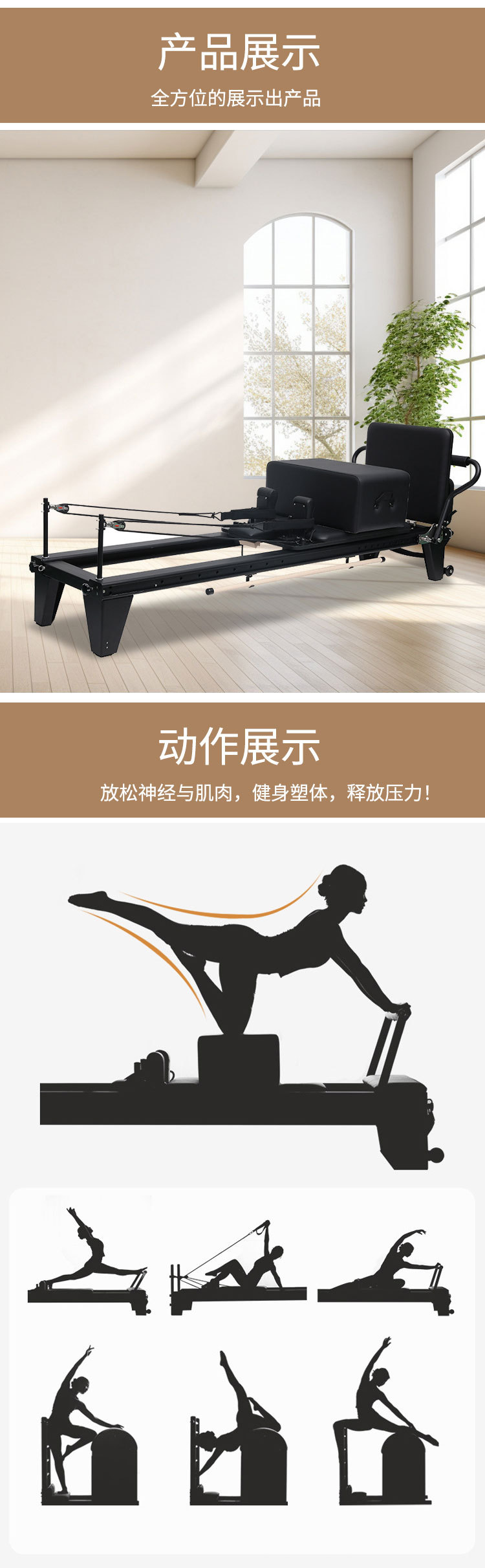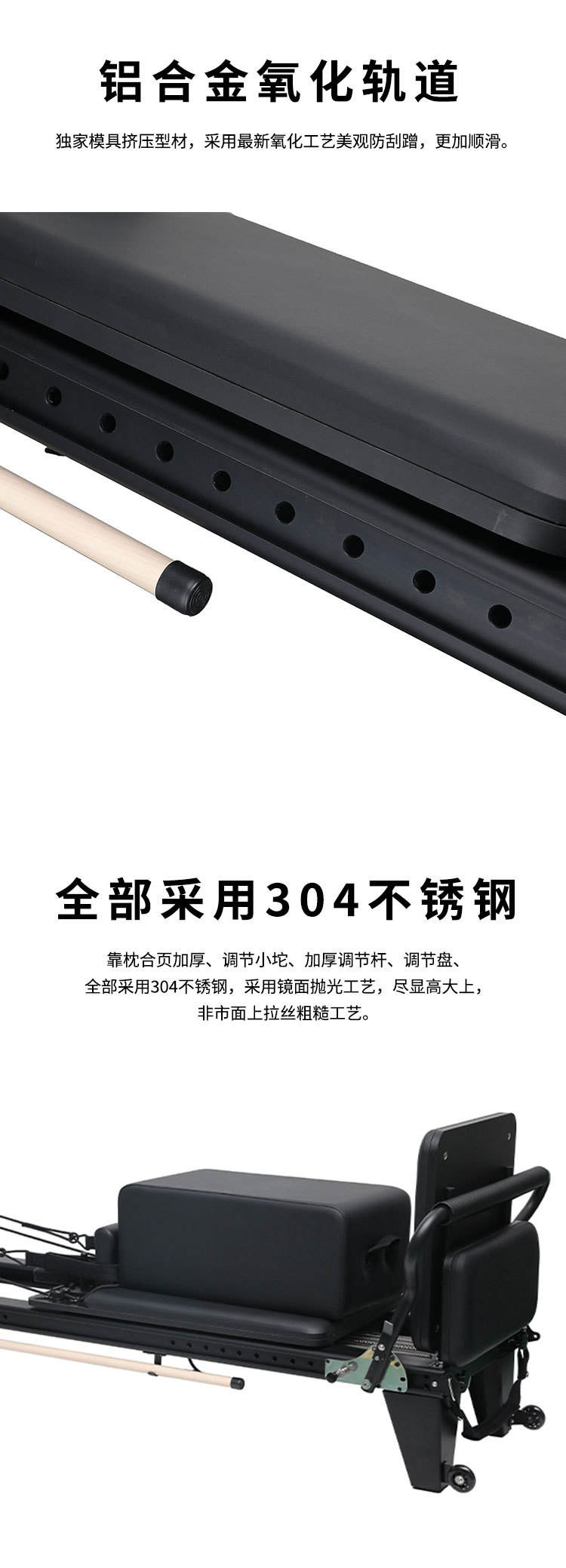 铝合金全轨道小黑床普拉提器材家用小白床私教铝合金可折叠核心床