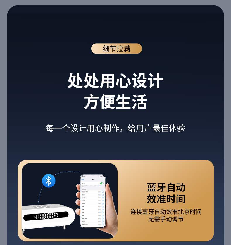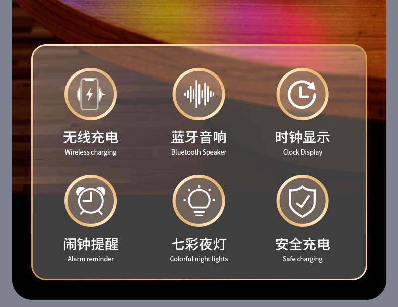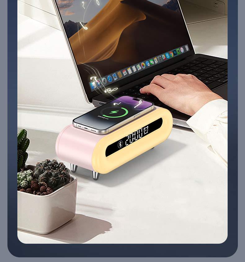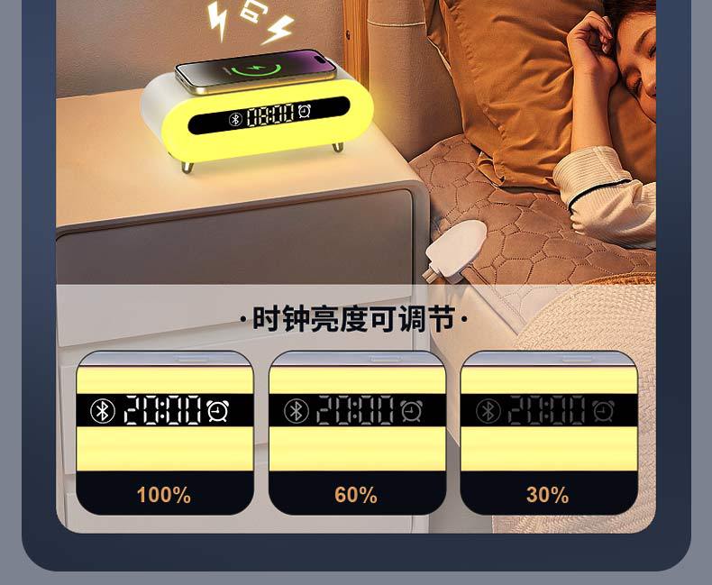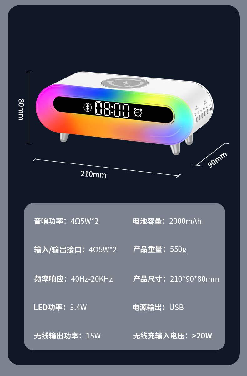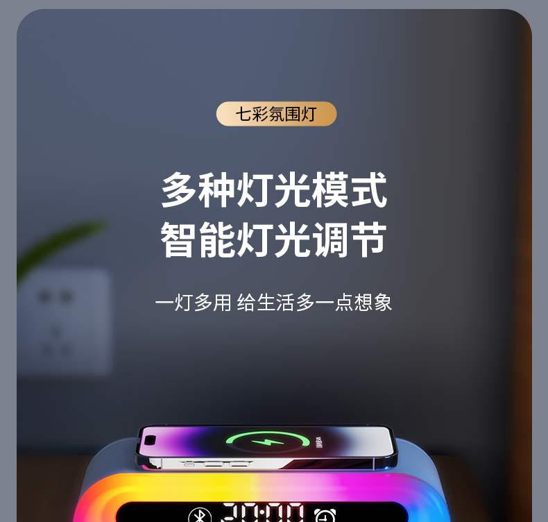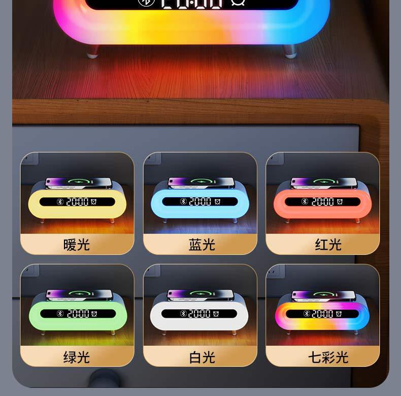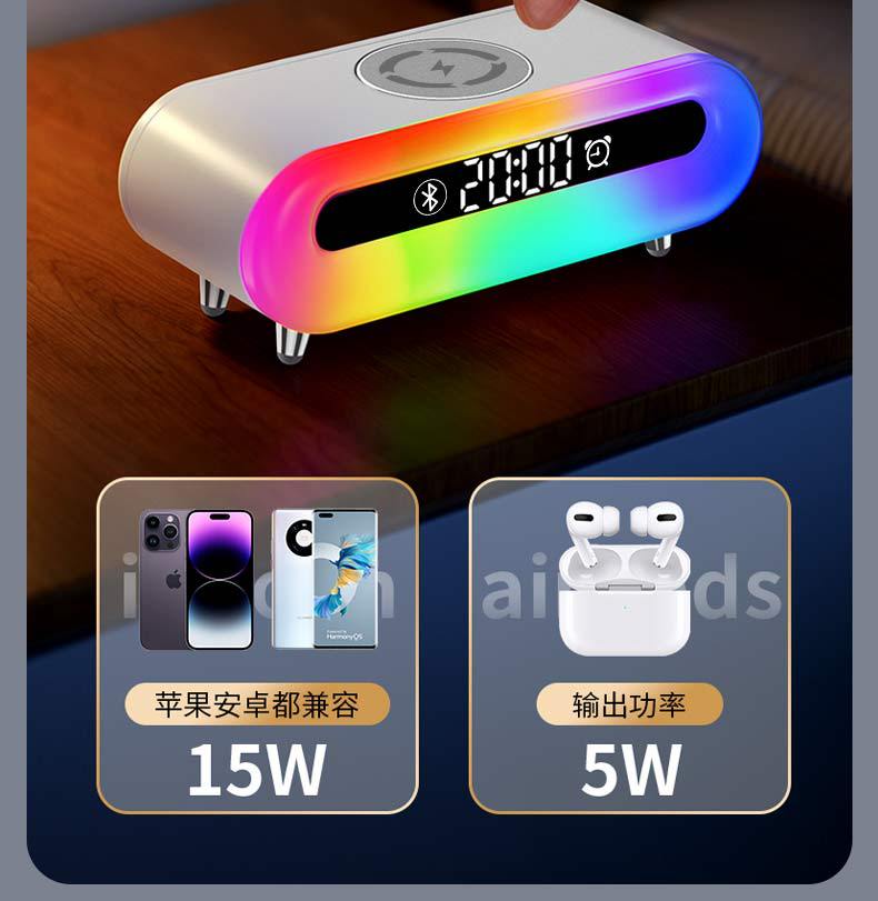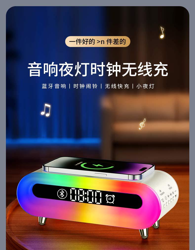 新品私模多功能无线充电蓝牙音响时钟闹钟家居桌面炫彩小夜灯礼物