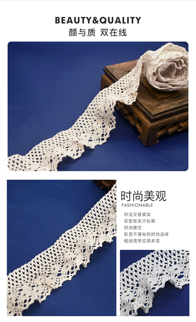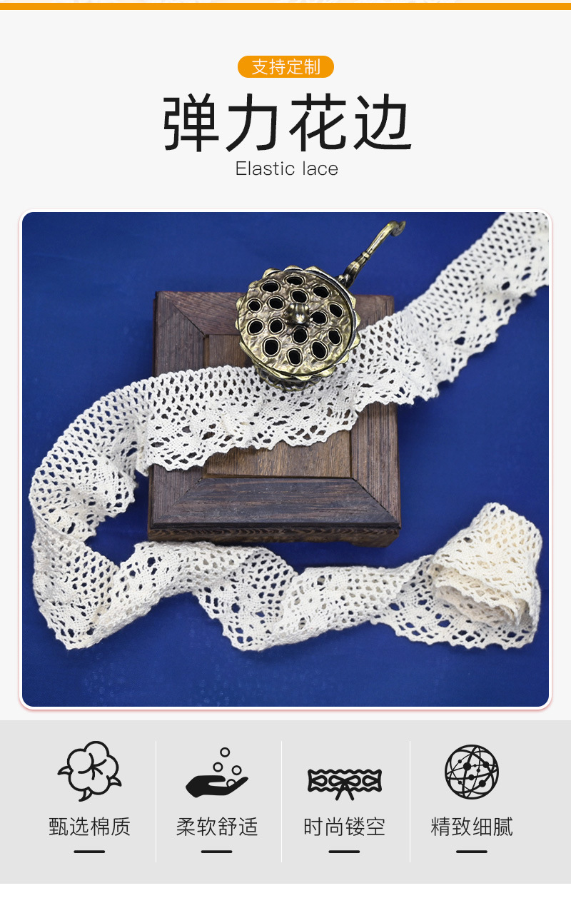 7030弹力花边辅料装饰蕾丝边DIY窗帘布料棉线花边镂空花边定 制