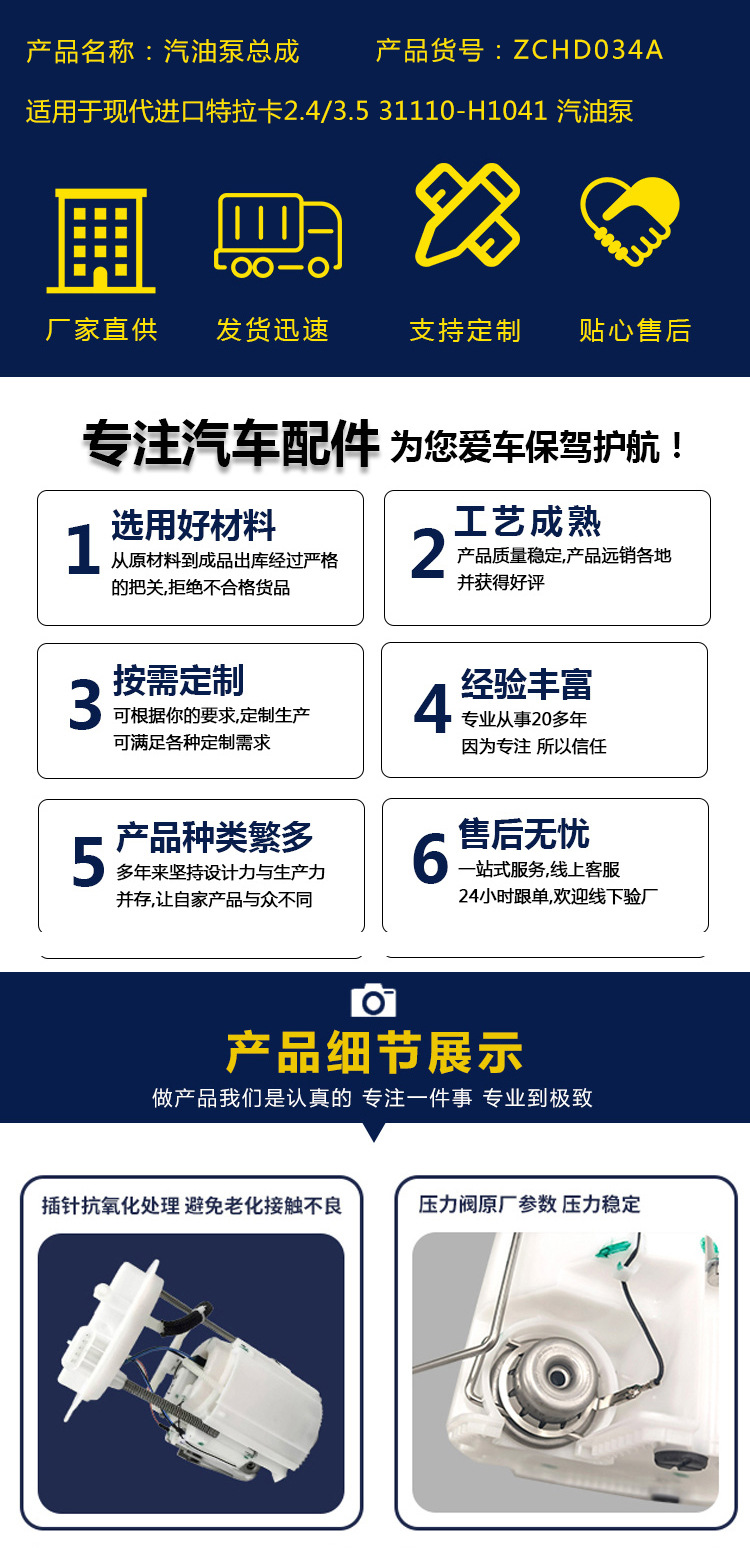 适用于现代进口特拉卡2.4/3.5 31110-H1041 燃油泵汽油泵总成批发