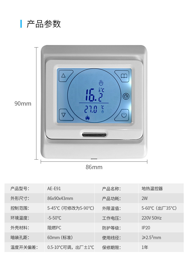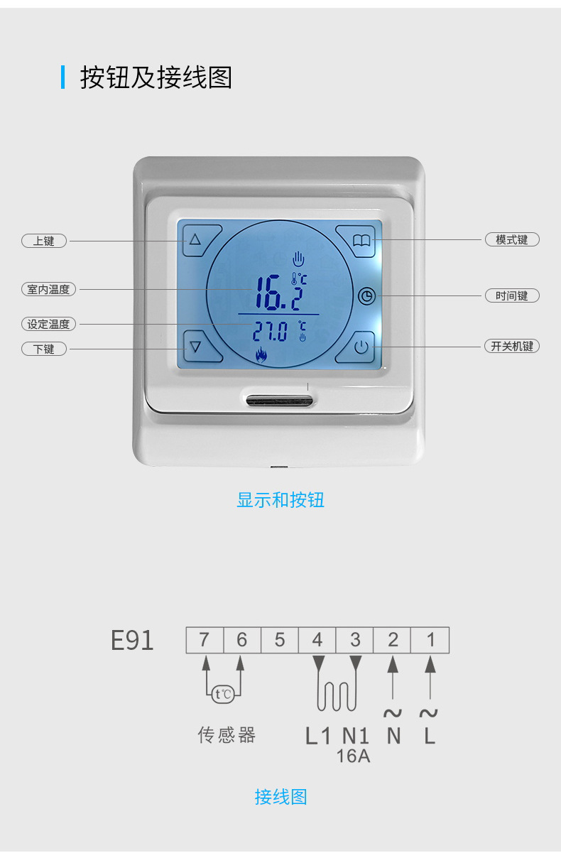 E91.26-电采暖地热液晶智能温度控制器家用液晶数显开关面板批发