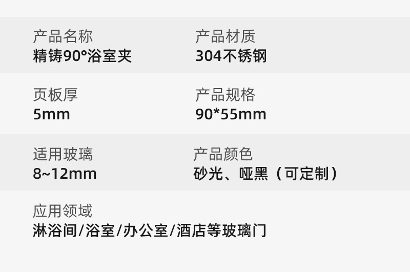 304精铸5mm90度浴室玻璃夹XZ-101 不锈钢浴室玻璃夹门合页现货