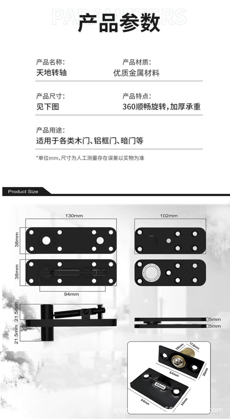 360度旋转重型加厚天地转轴上下转门铰链重型转轴隐形门暗藏合页