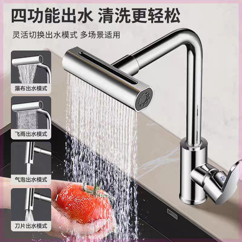 飞雨瀑布四档万向旋转水龙头防贱水神器家用厨房冷热水龙头延申器