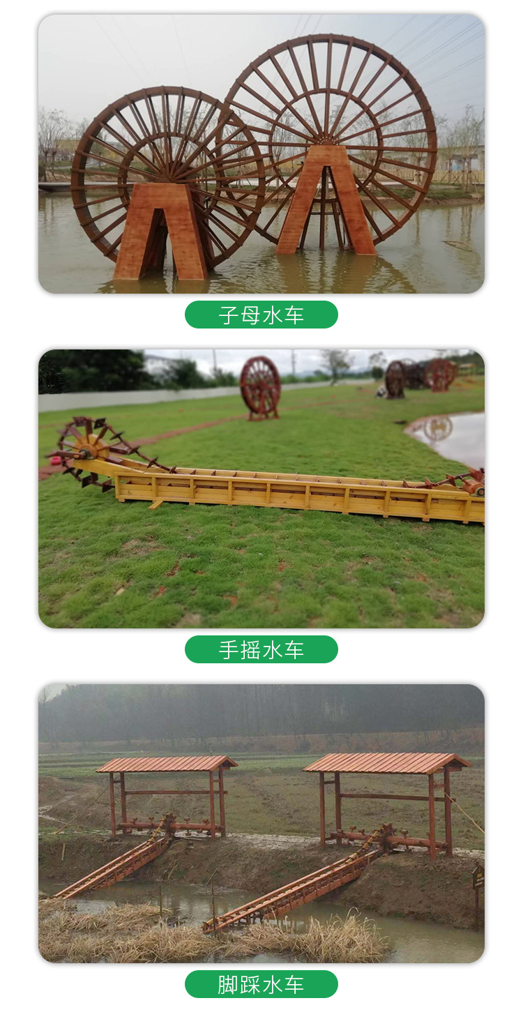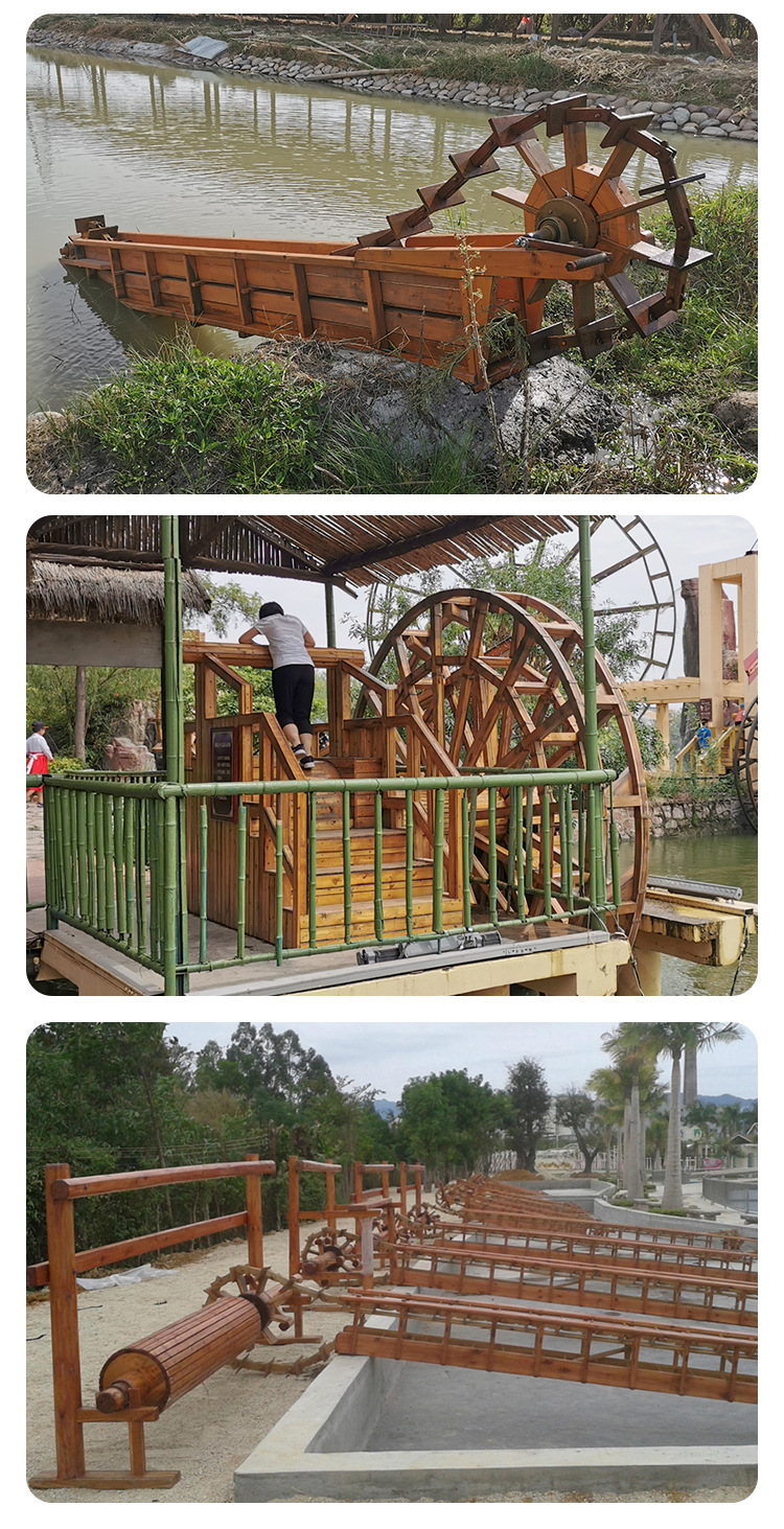 防腐木水车庭院景观摆件风车手摇脚踩装饰风水轮户外大型木质水车