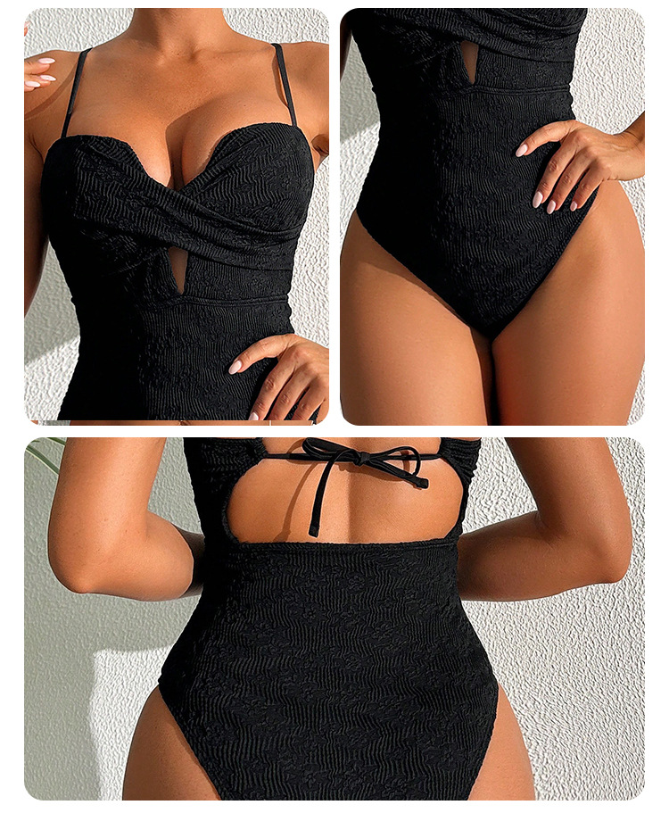 2025新款连体比基尼连身泳衣跨境亚马逊纯色显瘦bikini游泳衣