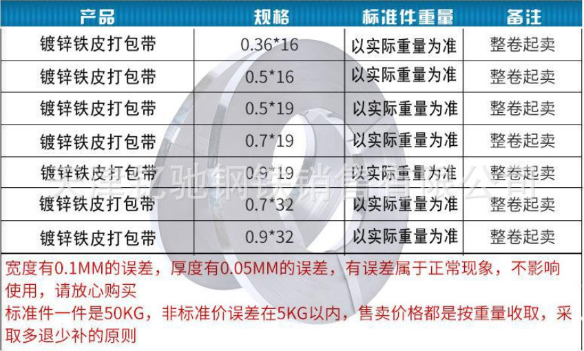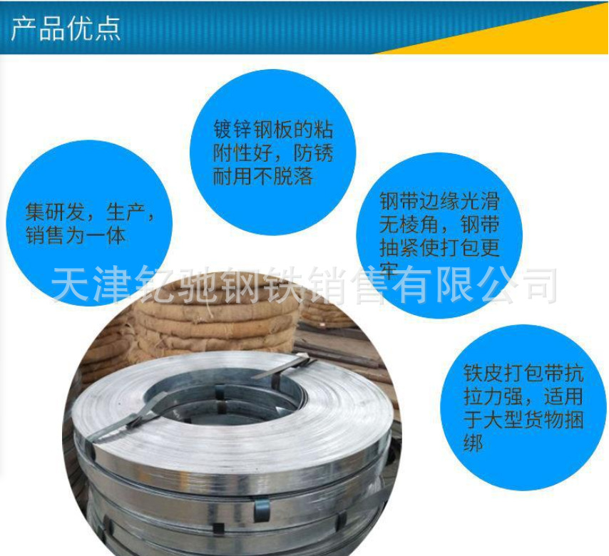 推荐理由:天津钇驰镀锌打包带,国标品质,强度高、防锈性好,适配工业重物捆扎,规格齐全,现货充足,24小时极速发货,批发零售均可,量大从优,物流打包首选!