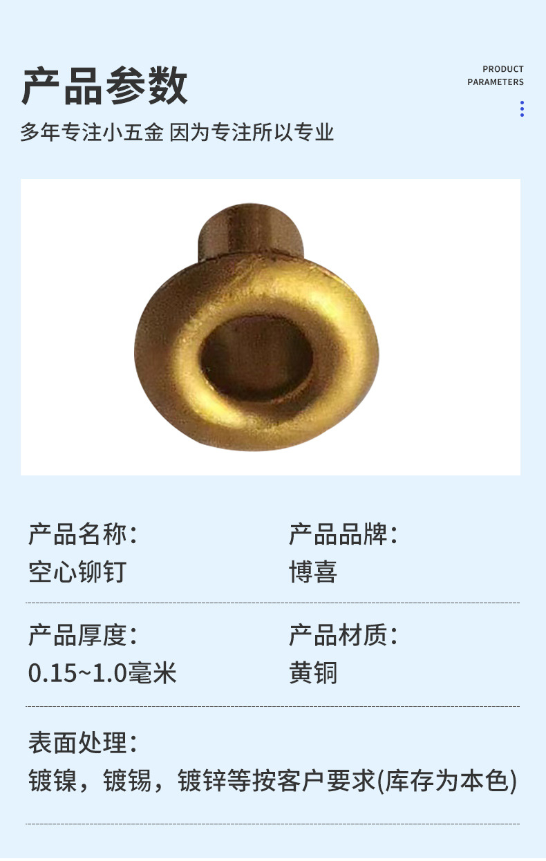 空心铜鸡眼PCB线路板铆钉电子电器铆钉鸡眼通管状铜空心铆钉孔眼