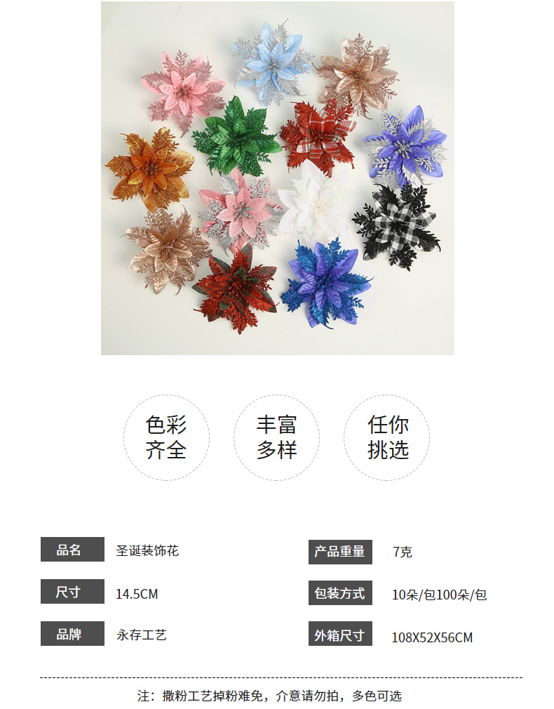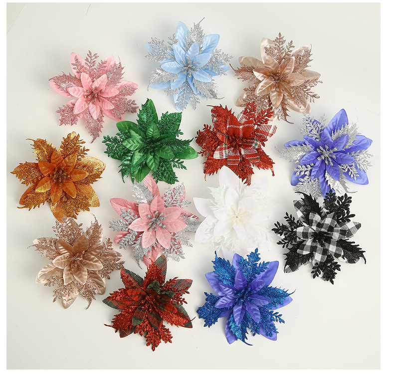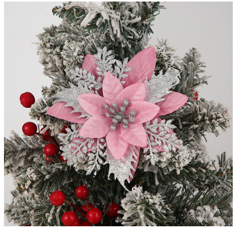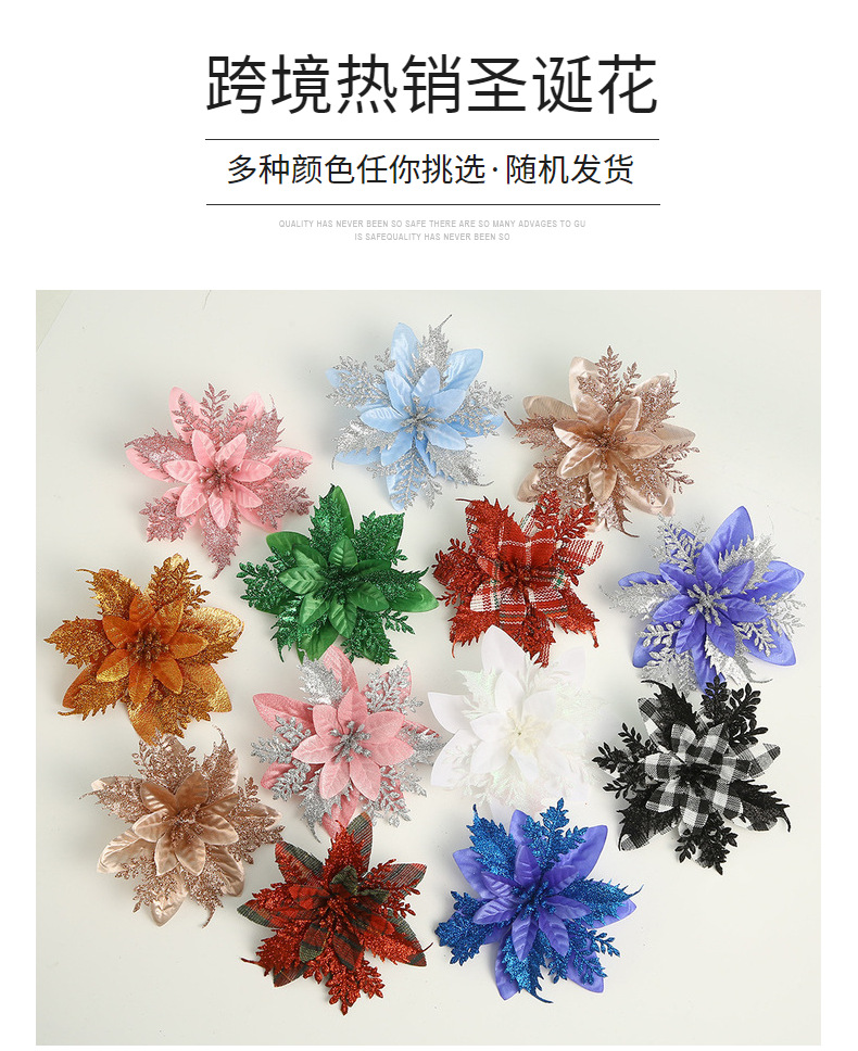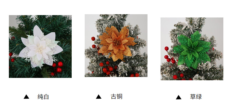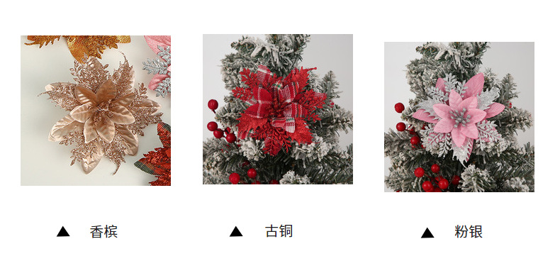 现货直供热销圣诞仿真花多色圣诞树装饰圣诞节布置装饰配件批发