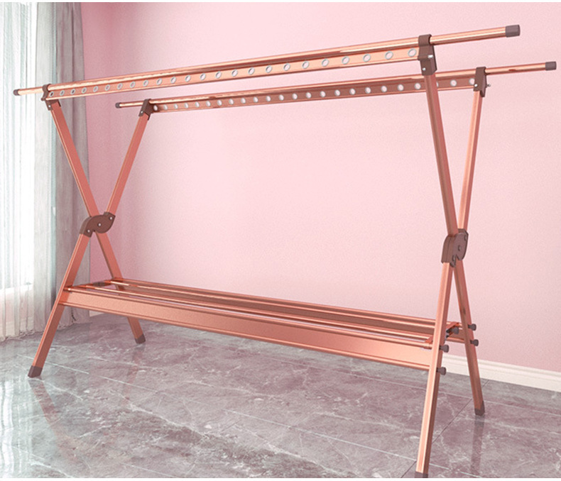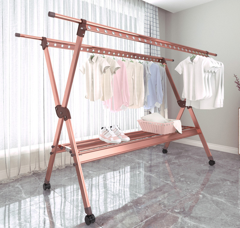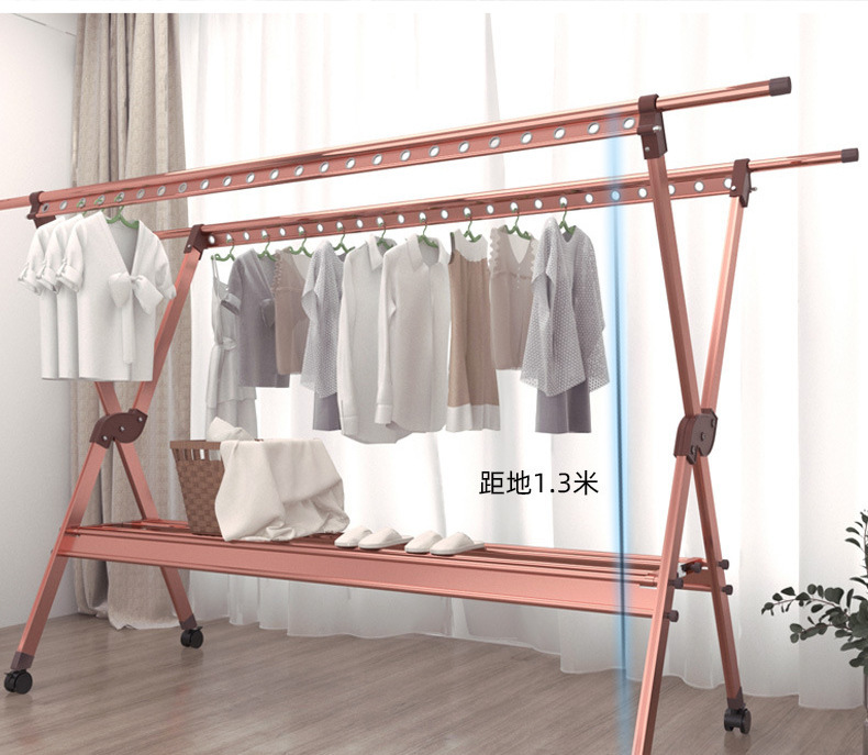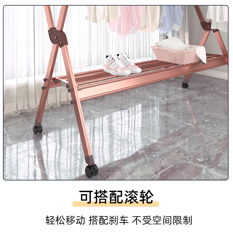 外贸晾衣架铝合金双杆落地晒衣架家用阳台防风可移动晾晒衣服支架