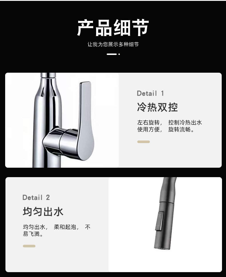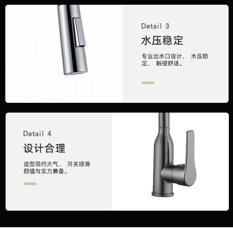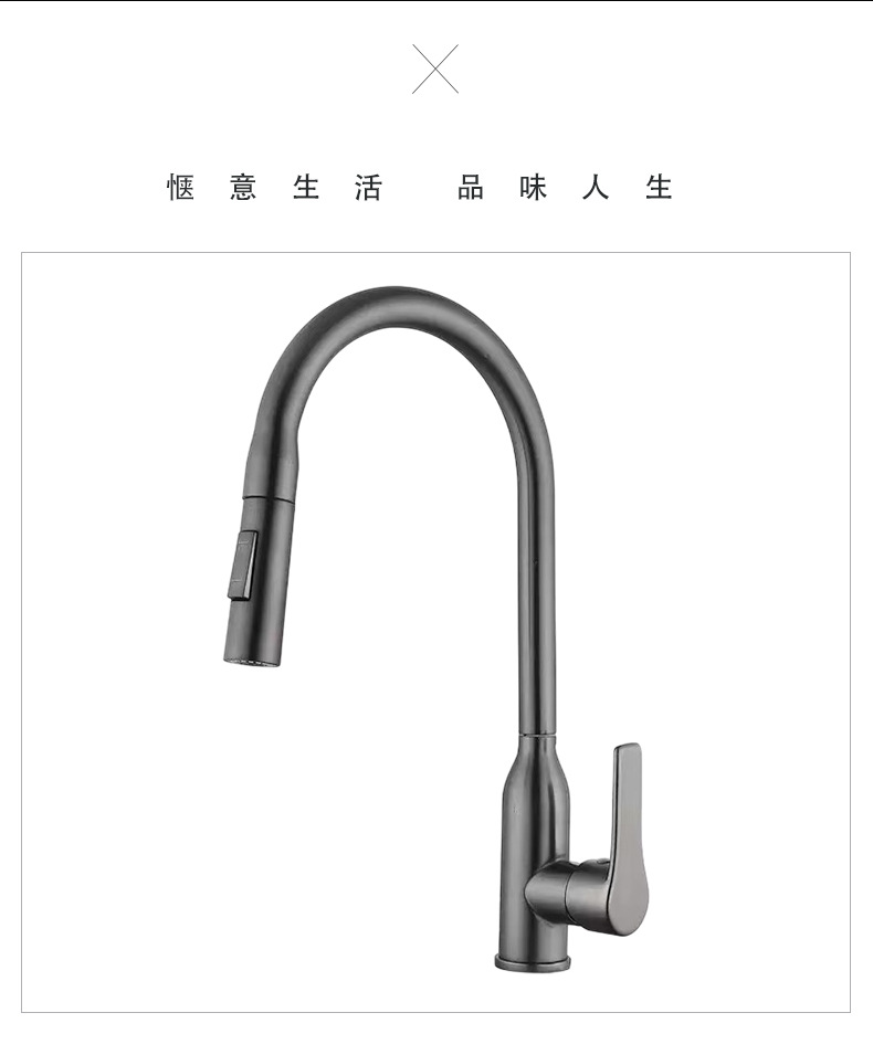 厨房水龙头冷热两档切换水槽洗碗池净水灰色黑色旋转龙头喷头灶台