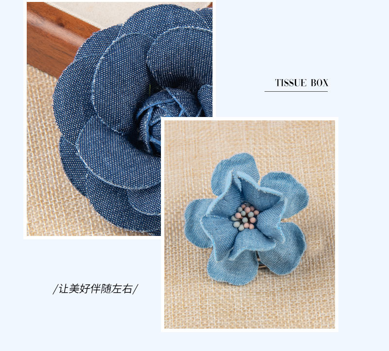 牛仔山茶花服装装饰花辅料发饰配件胸花鞋花牛仔布艺花朵手工布花