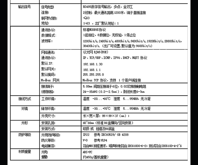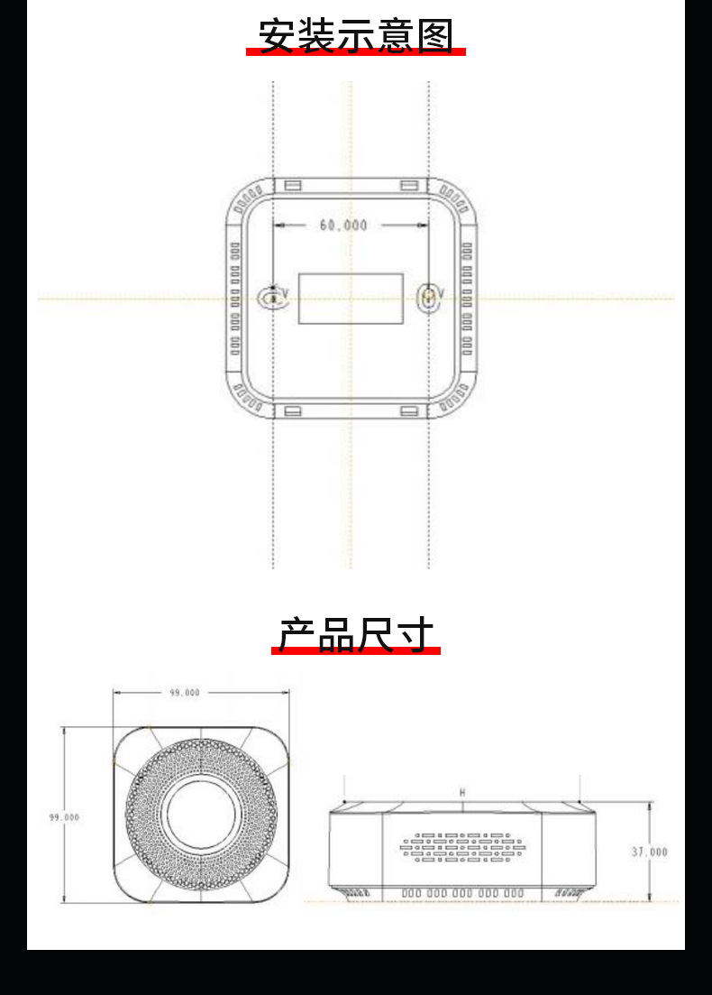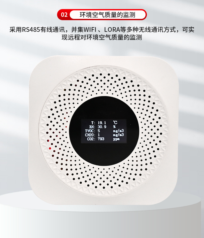 室内吸顶传感器 彩屏显示吸顶式多参数空气质量温湿度检测仪