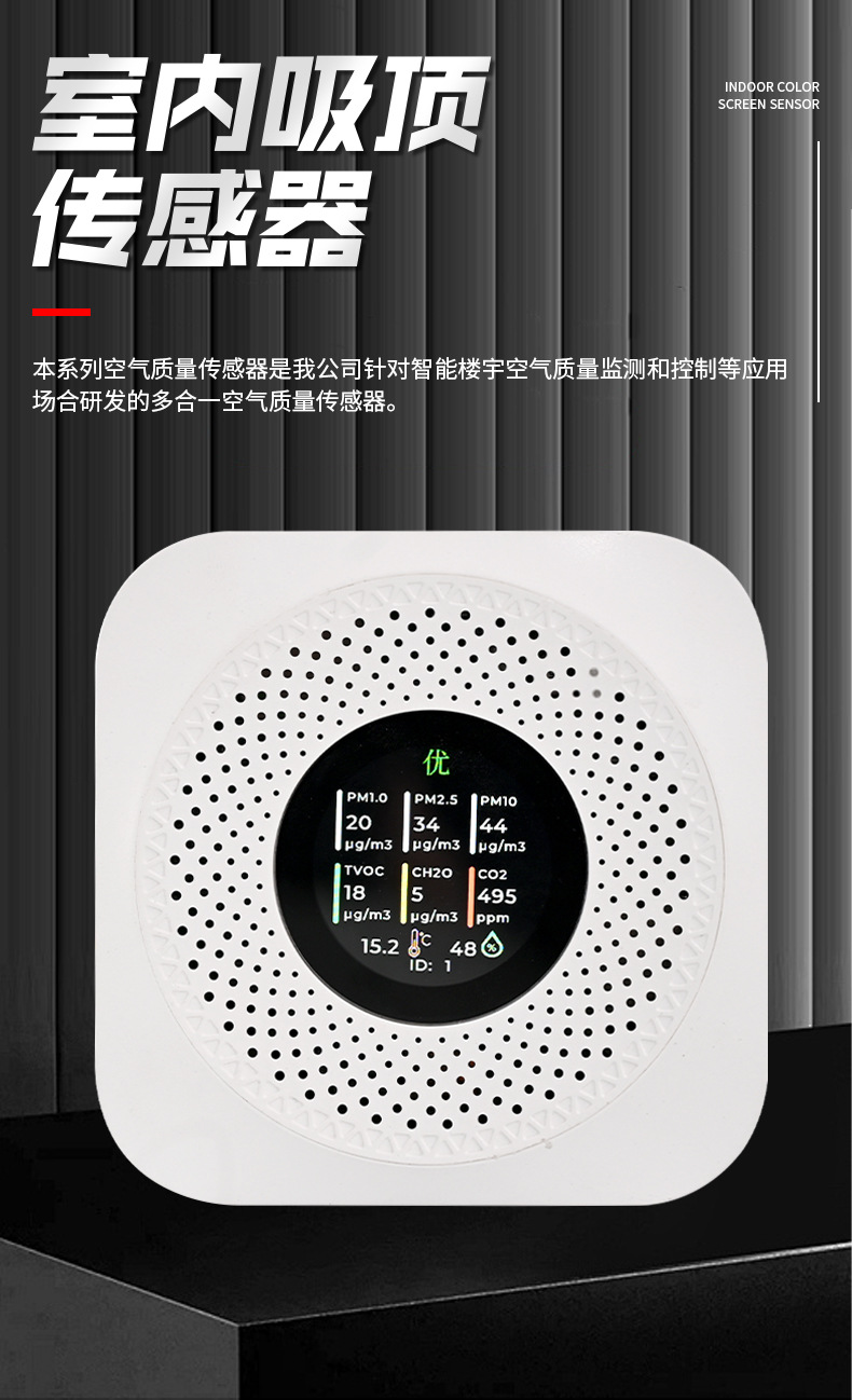 室内吸顶传感器 彩屏显示吸顶式多参数空气质量温湿度检测仪,批发价,价格:155,厂家直销,室内吸顶传感器 彩屏显示吸顶式多参数空气质量温湿度检测仪,免费拿样。
