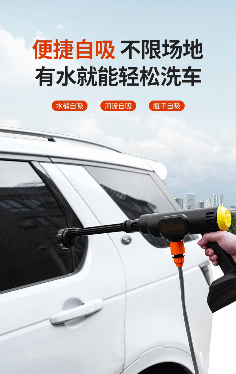 家用多功能电动水枪自动吸水锂电池洗地带管高压洗车枪洗车机灌溉