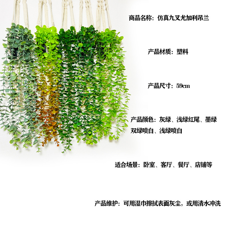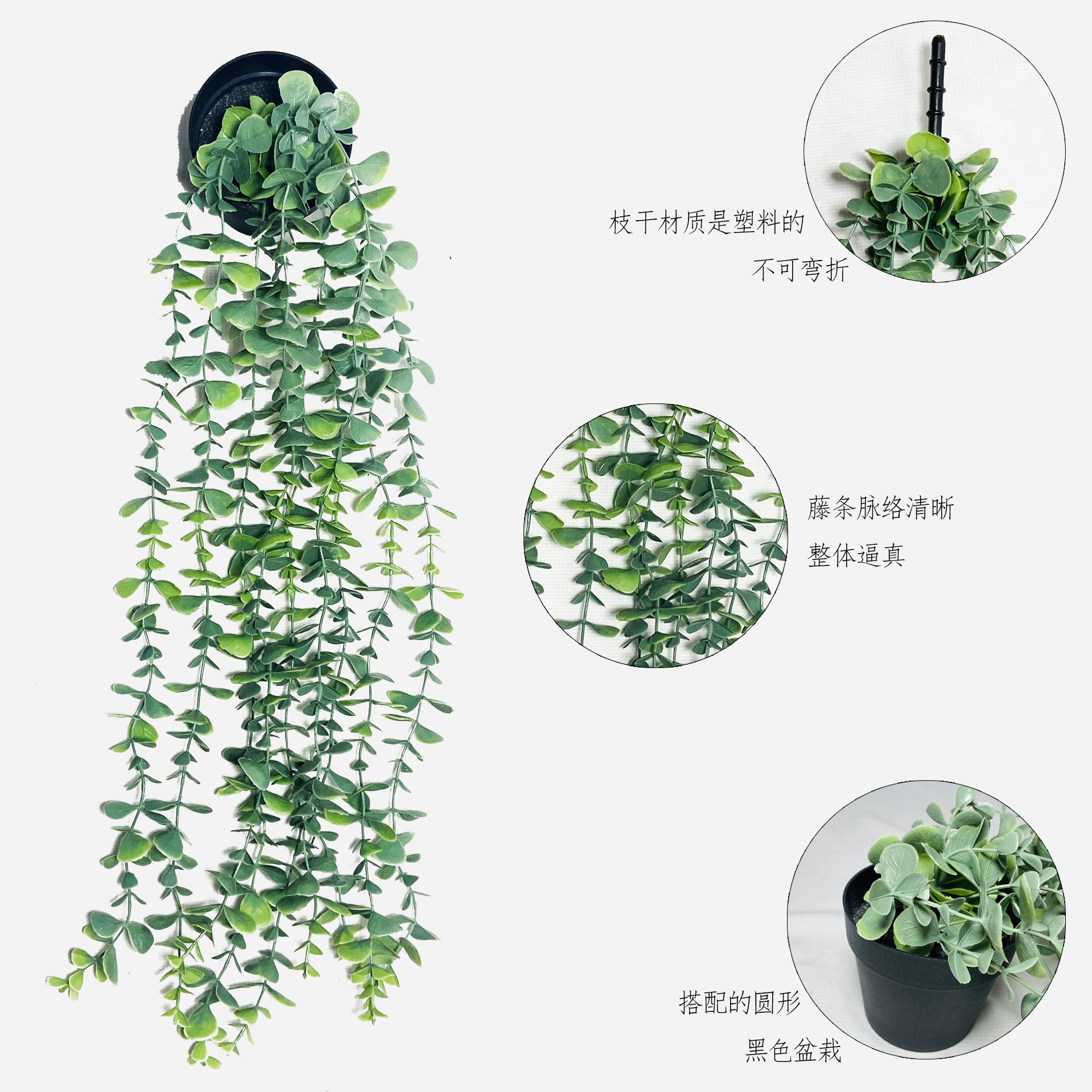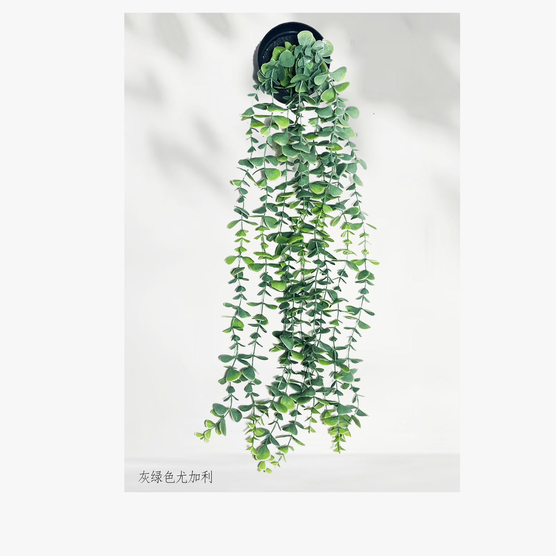 仿真九叉尤加利挂垂挂壁挂装饰藤条绿植墙面垂吊拼仿真绿植墙饰