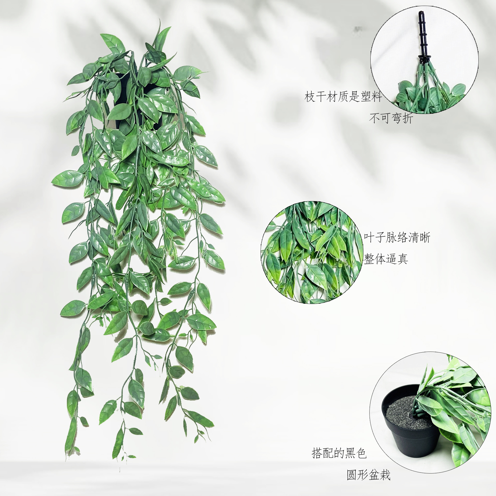 ✅尤加利藤条桉树叶曼陀罗豌豆悬挂盆栽磨砂装饰盆仿真绿植装饰