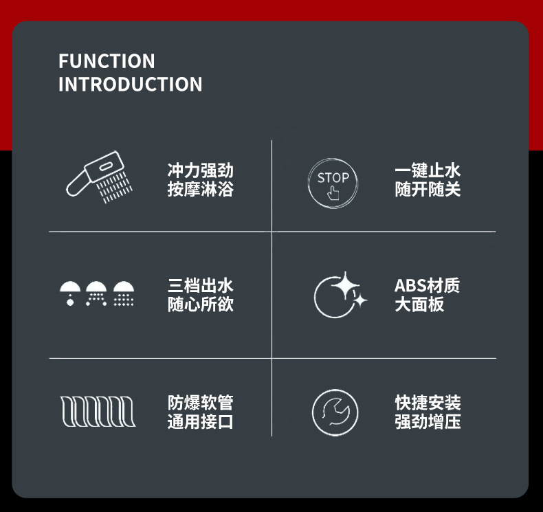 增压淋浴花洒喷头超强加压高压浴室洗澡淋雨大水量浴霸沐浴莲蓬头