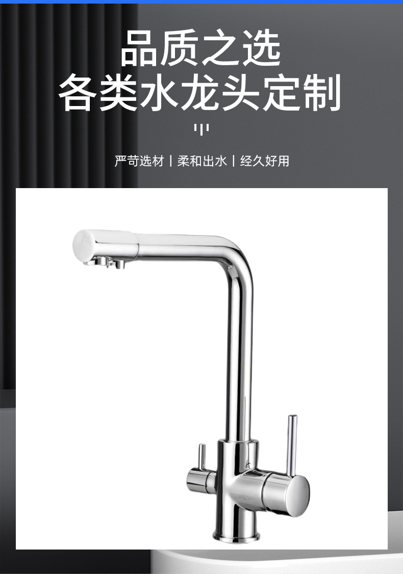 净水器水龙头三合一直饮家用家用水槽菜盆防溅可旋转净水双水龙头,批发价,价格:72.5,厂家直销,净水器水龙头三合一直饮家用家用水槽菜盆防溅可旋转净水双水龙头,免费拿样。