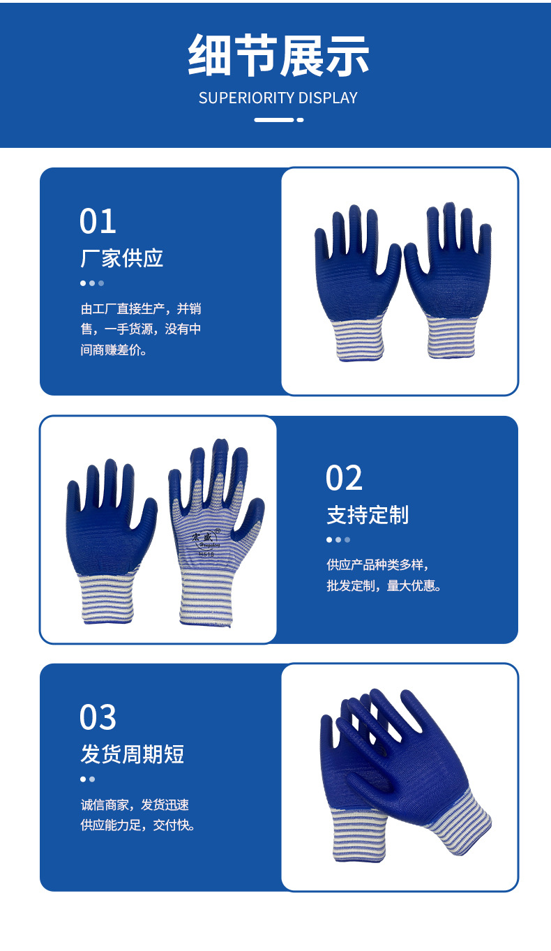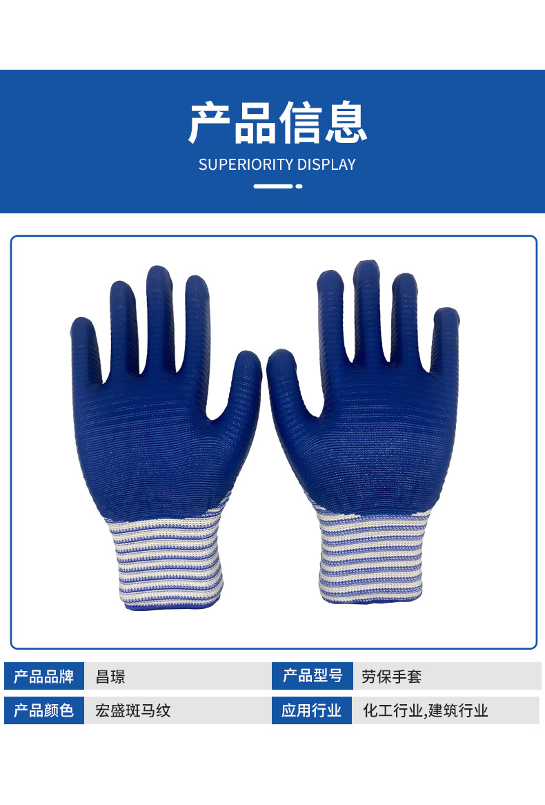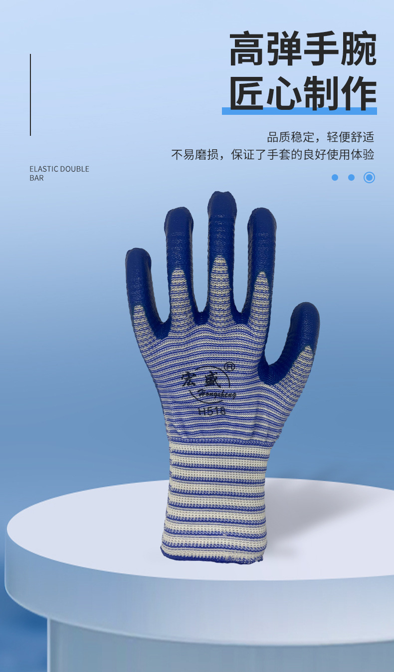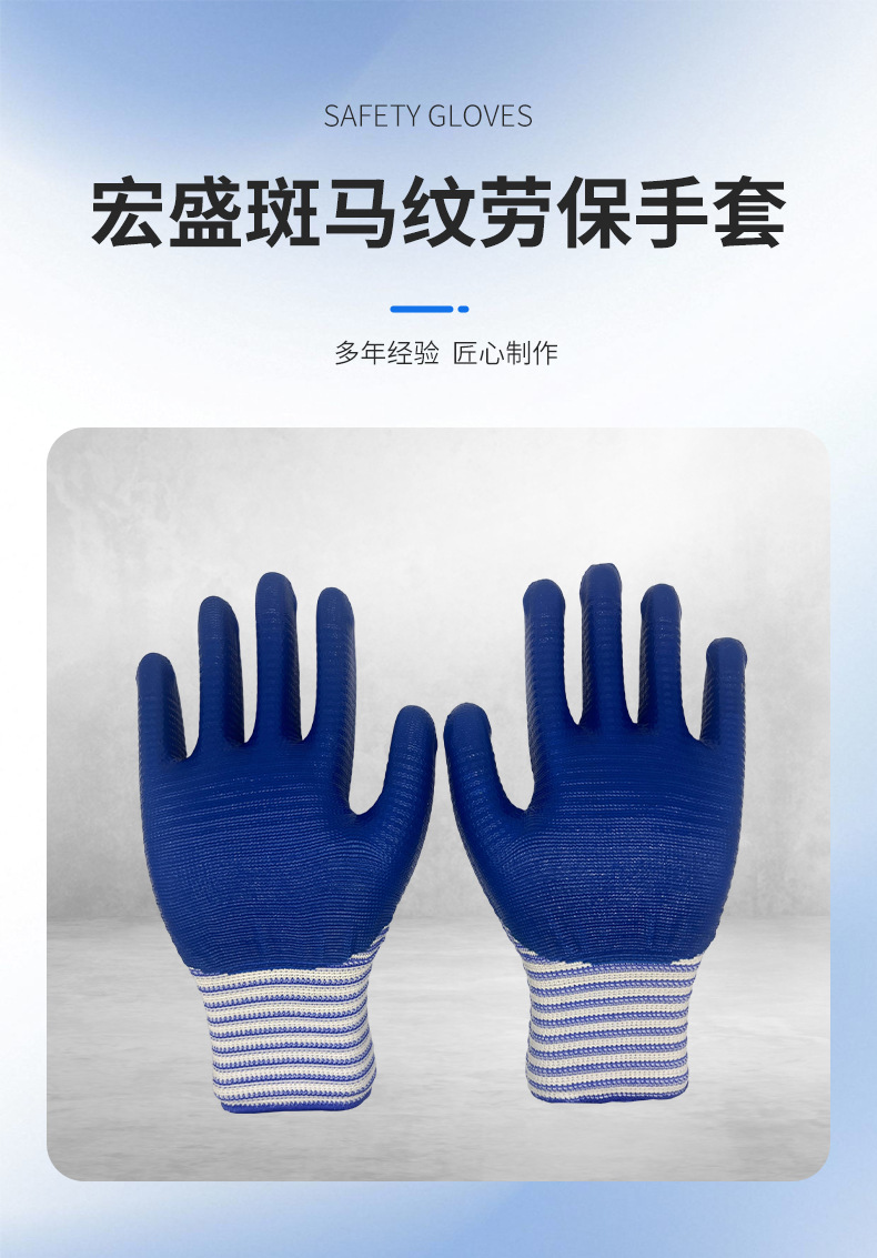 宏盛斑马纹劳保手套 劳工地工作用的耐磨斑马纹劳保防护手套批发