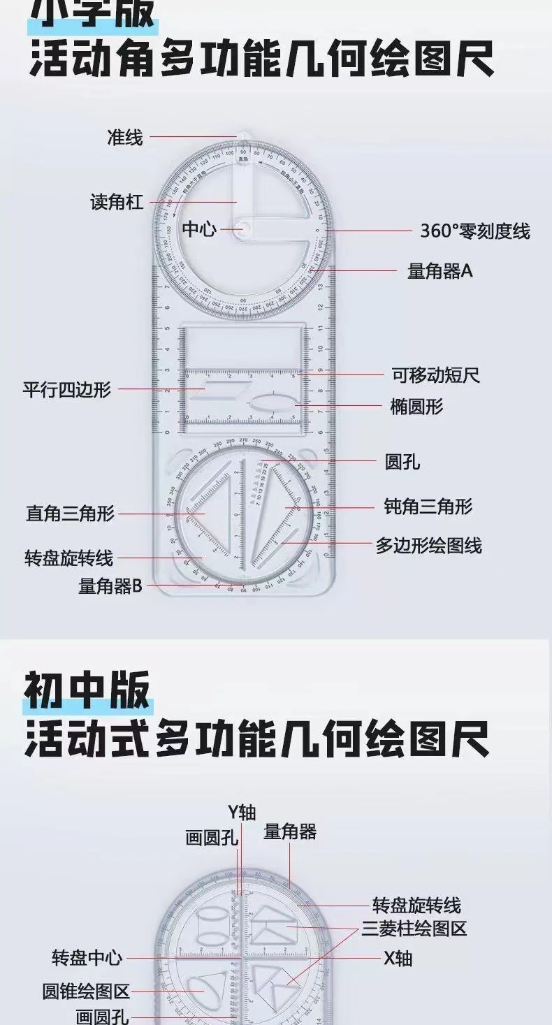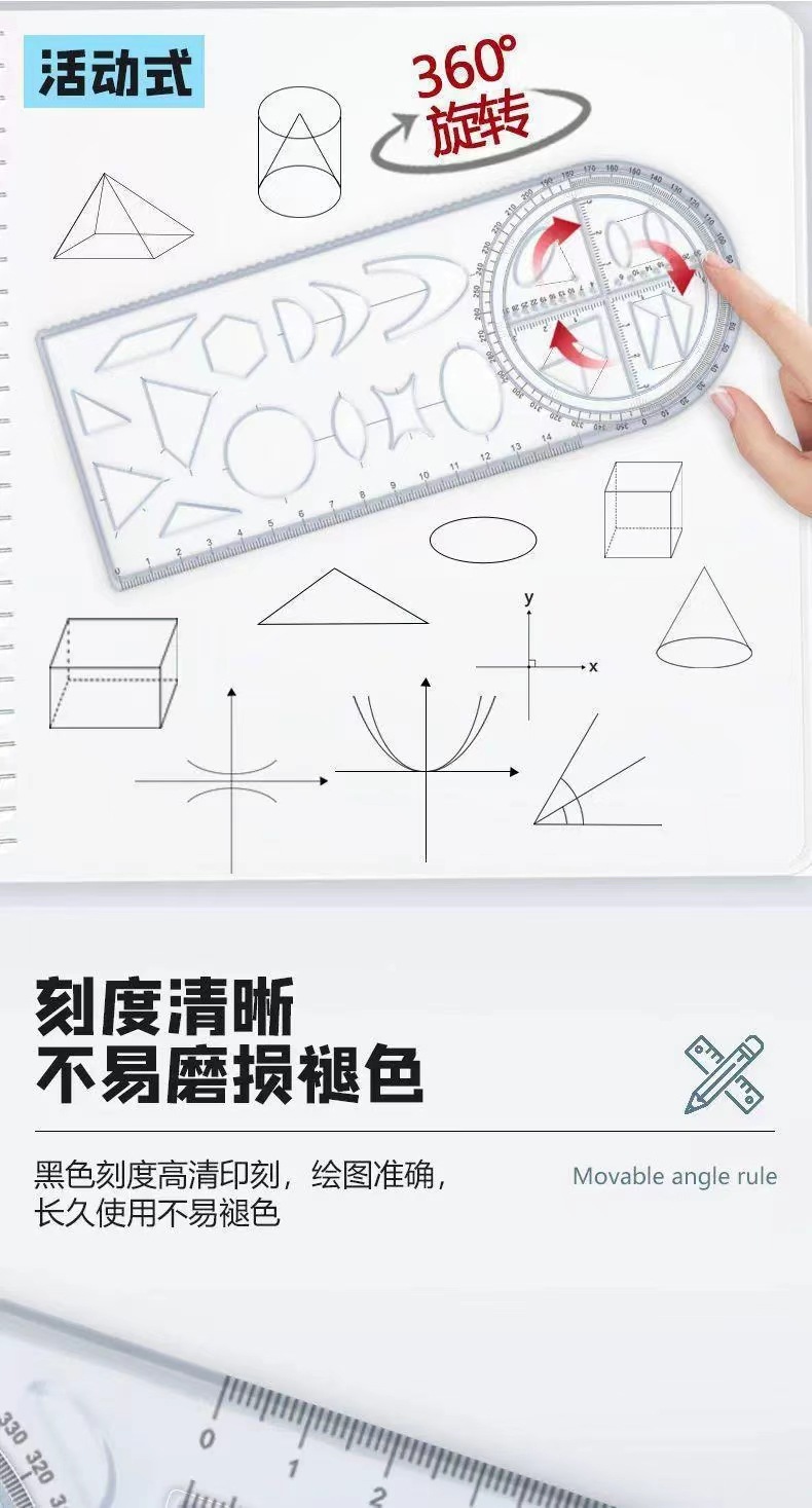 多功能尺子几何绘画尺小学初高中生活动角函数平面图形画角尺量角,批发价,价格:0.68,厂家直销,多功能尺子几何绘画尺小学初高中生活动角函数平面图形画角尺量角,免费拿样。
