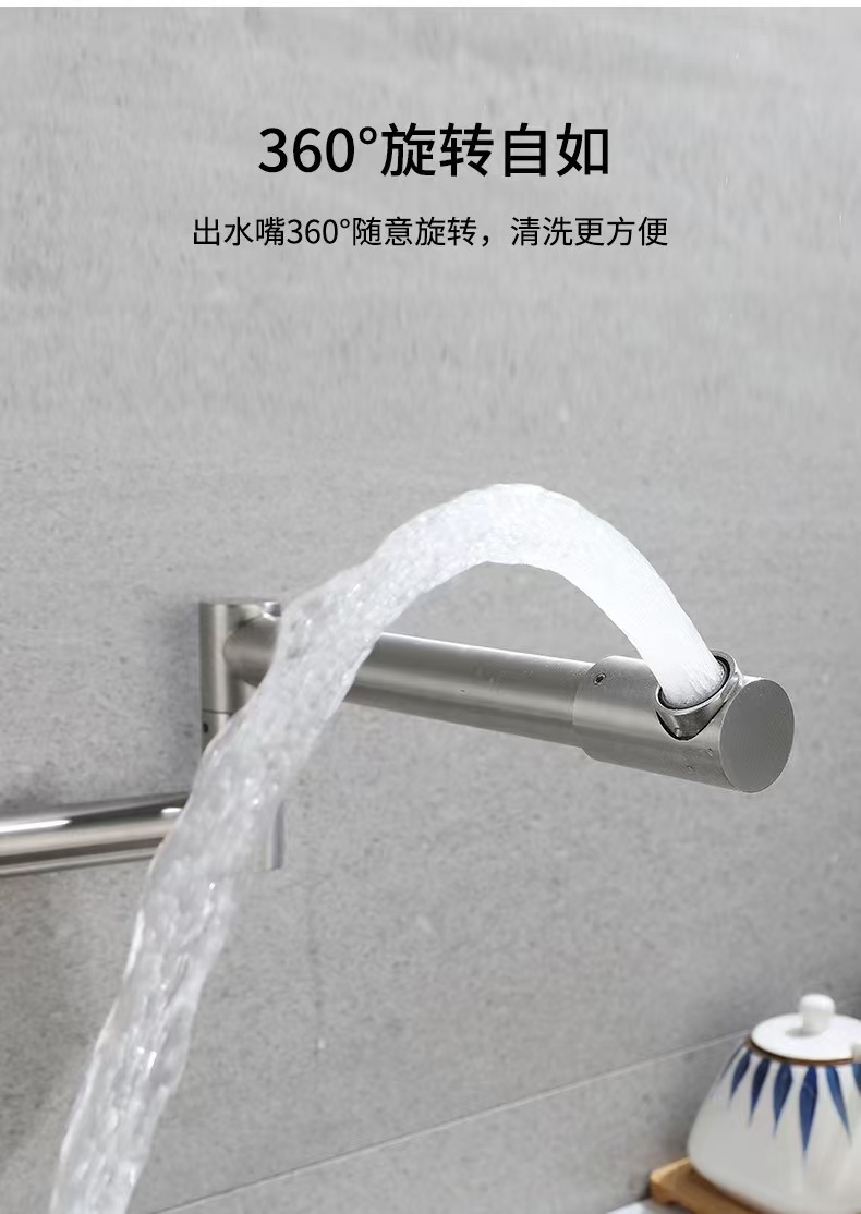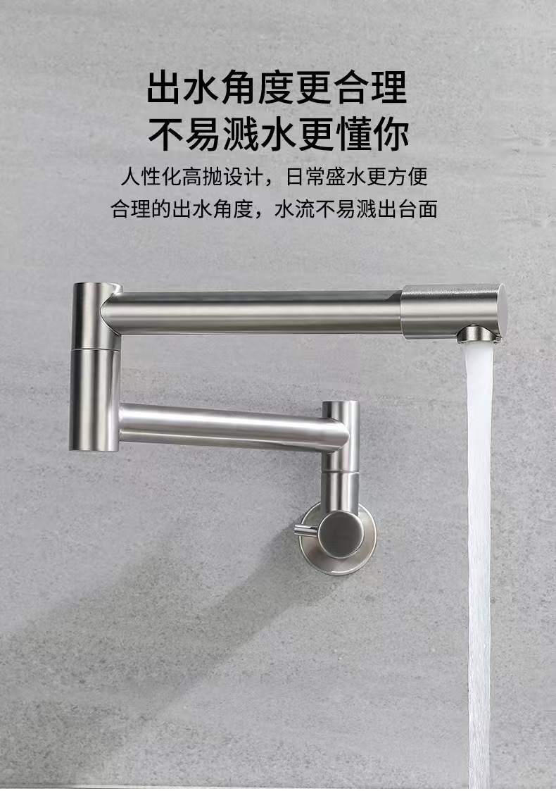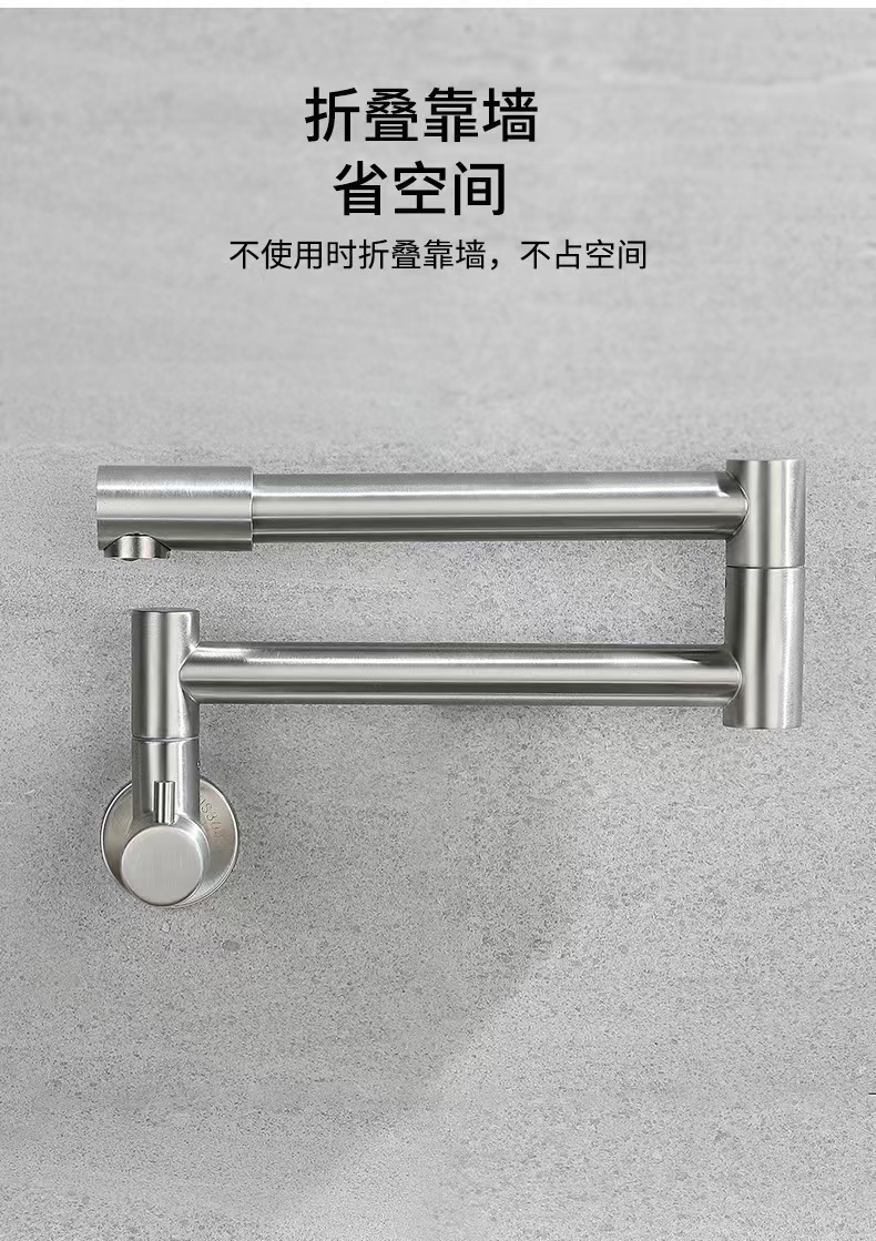 跨境不锈钢入墙式折叠水龙头单冷万向旋转美式开平四分厨房水龙头