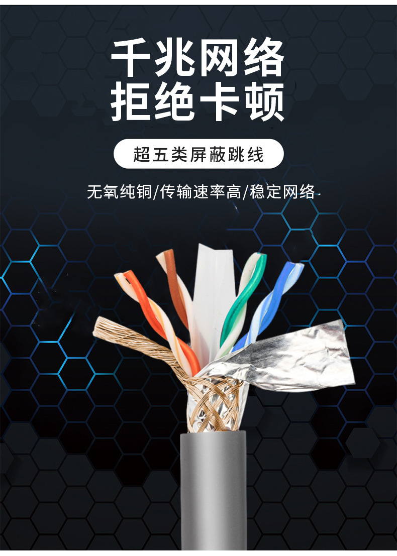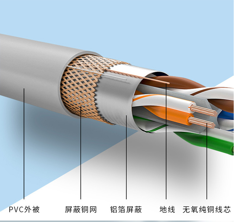 网线超五类单屏蔽无氧铜成品网络线多股成型网络跳线千兆双绞线