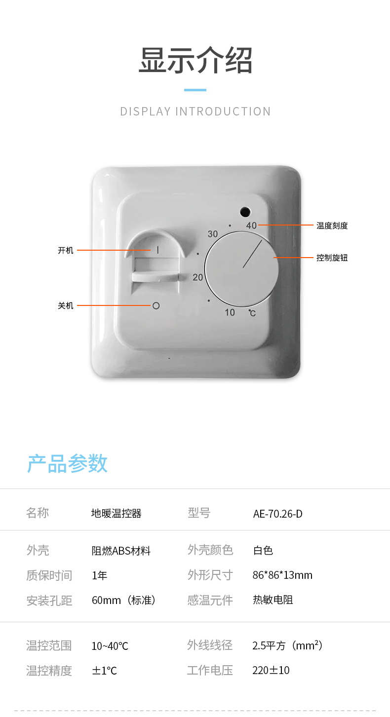 70.26地暖机械温控器旋钮式电采暖水地暖温度地热控制器面板开关
