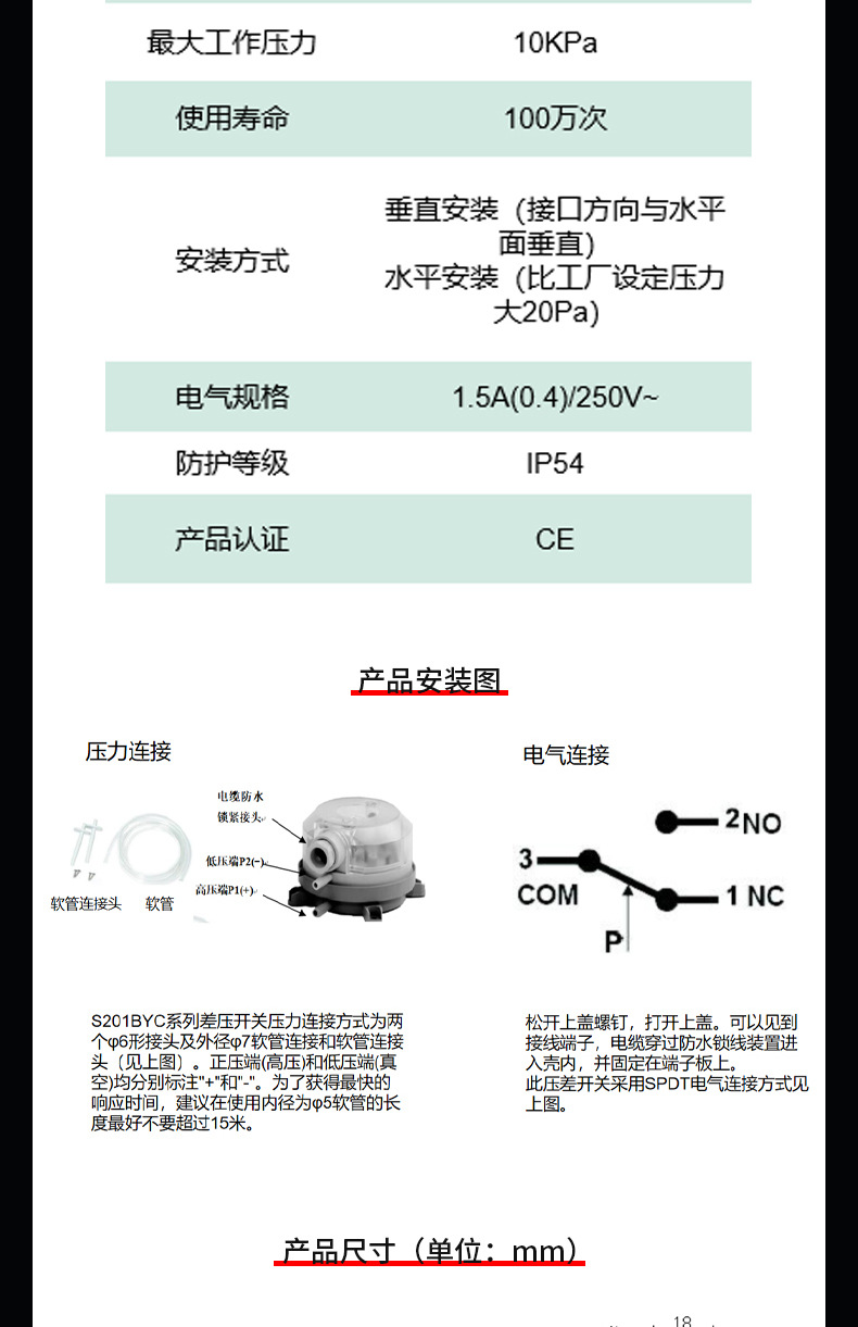 压差开关 空气微差压风压计微压差表压力表气体流量压力开关