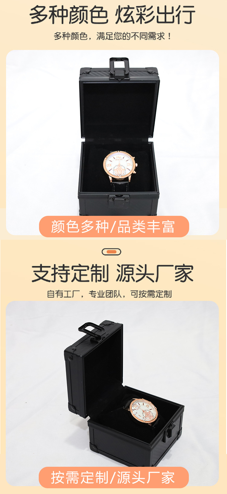 铝合金手表箱收纳盒高档黑色包装盒多功能手表展示手链手镯首饰盒,批发价,价格:20,厂家直销,铝合金手表箱收纳盒高档黑色包装盒多功能手表展示手链手镯首饰盒,免费拿样。