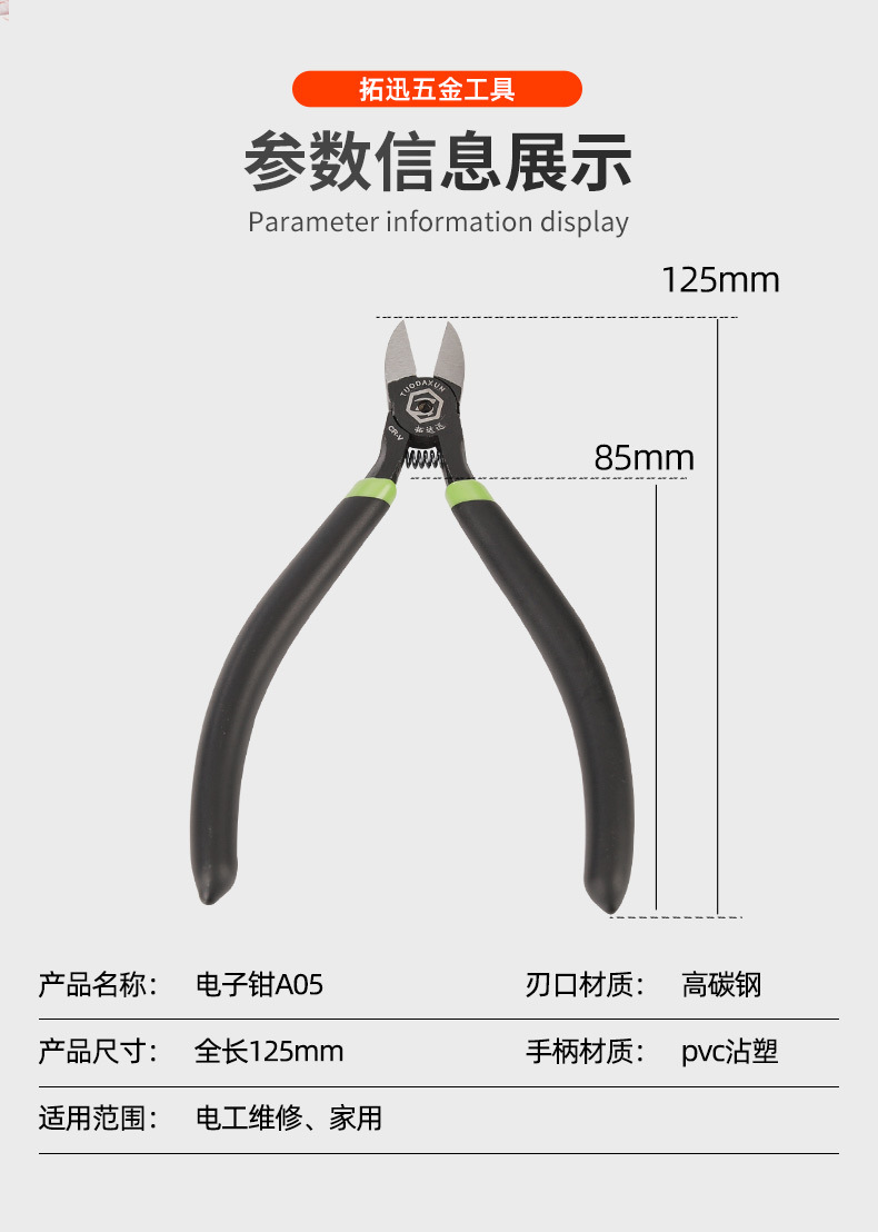 电子钳A05 厂家耐用高硬度发黑防锈工艺日式工业用口水钳,批发价,价格:9.5,厂家直销,电子钳A05 厂家耐用高硬度发黑防锈工艺日式工业用口水钳,免费拿样。
