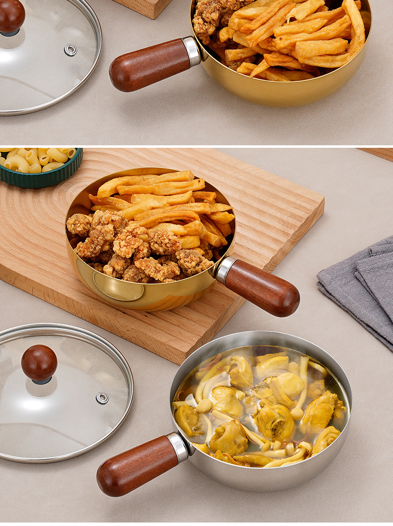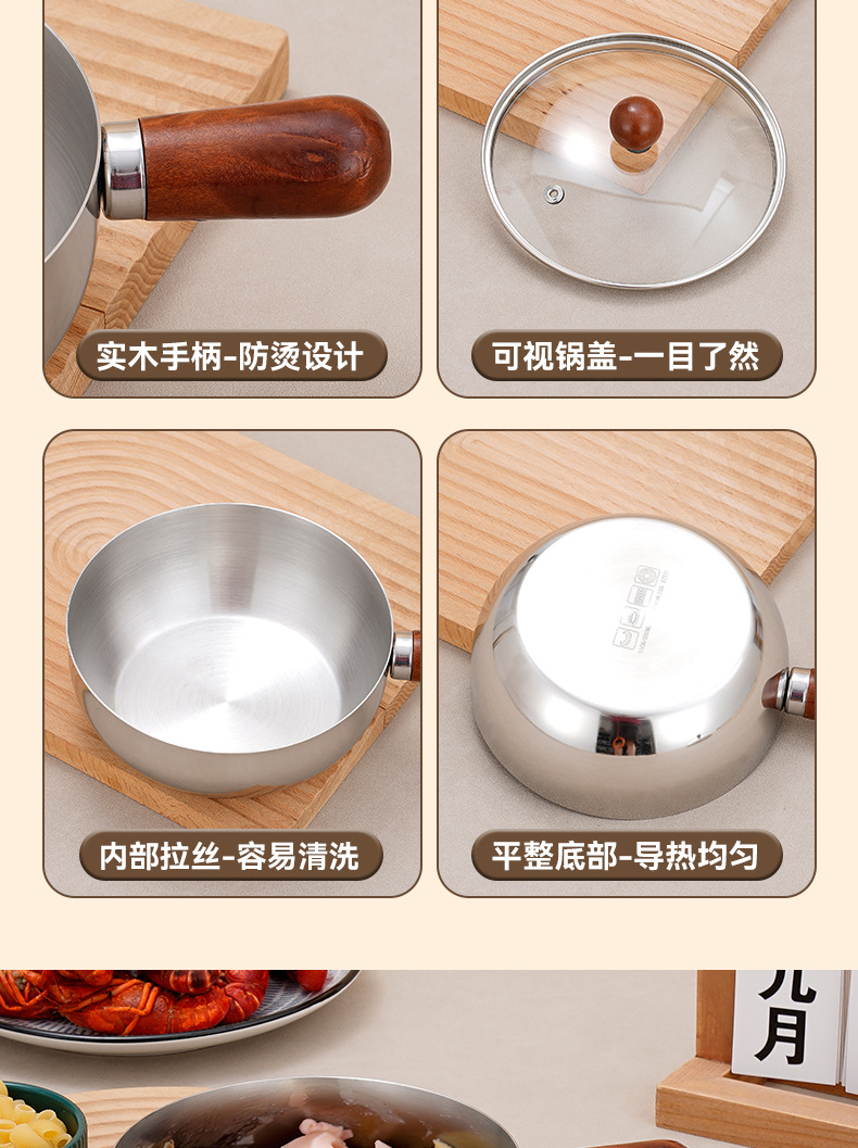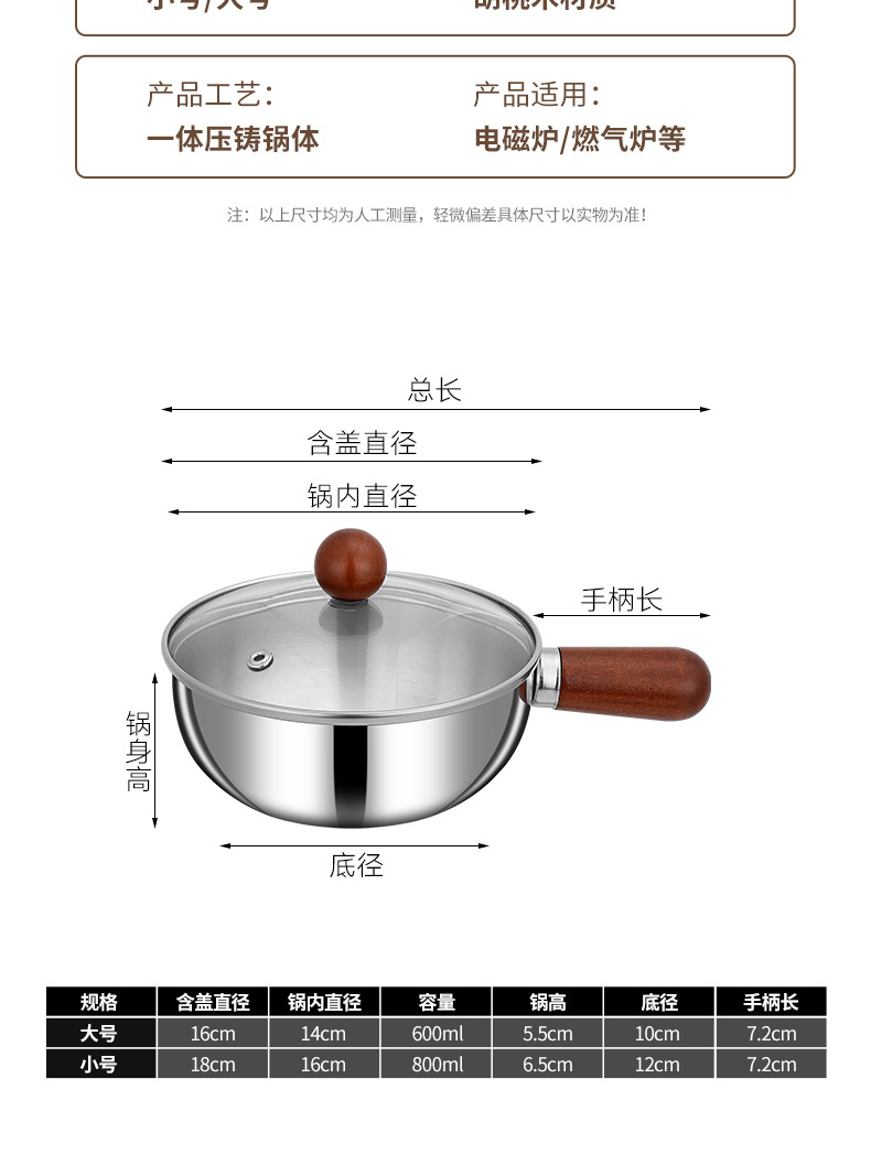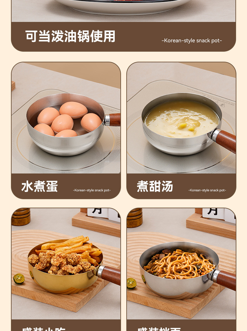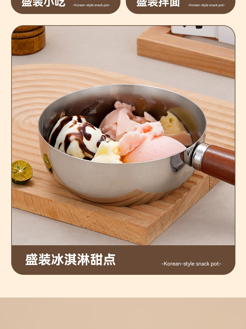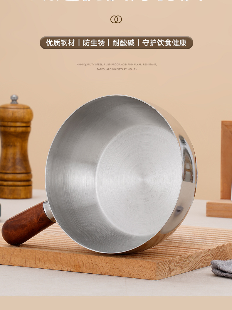 304不锈钢韩式小锅烹饪酱汁料理无涂层木柄牛奶辅食食品级热牛奶