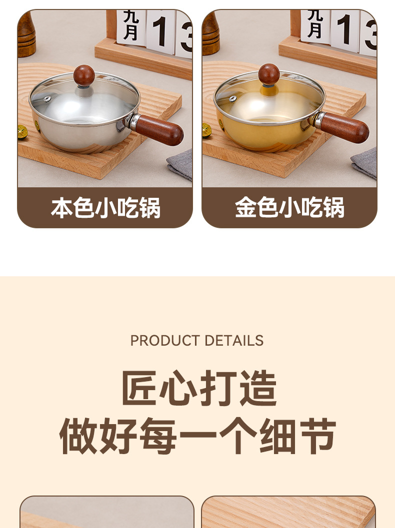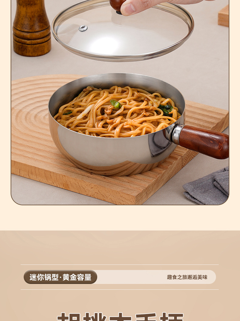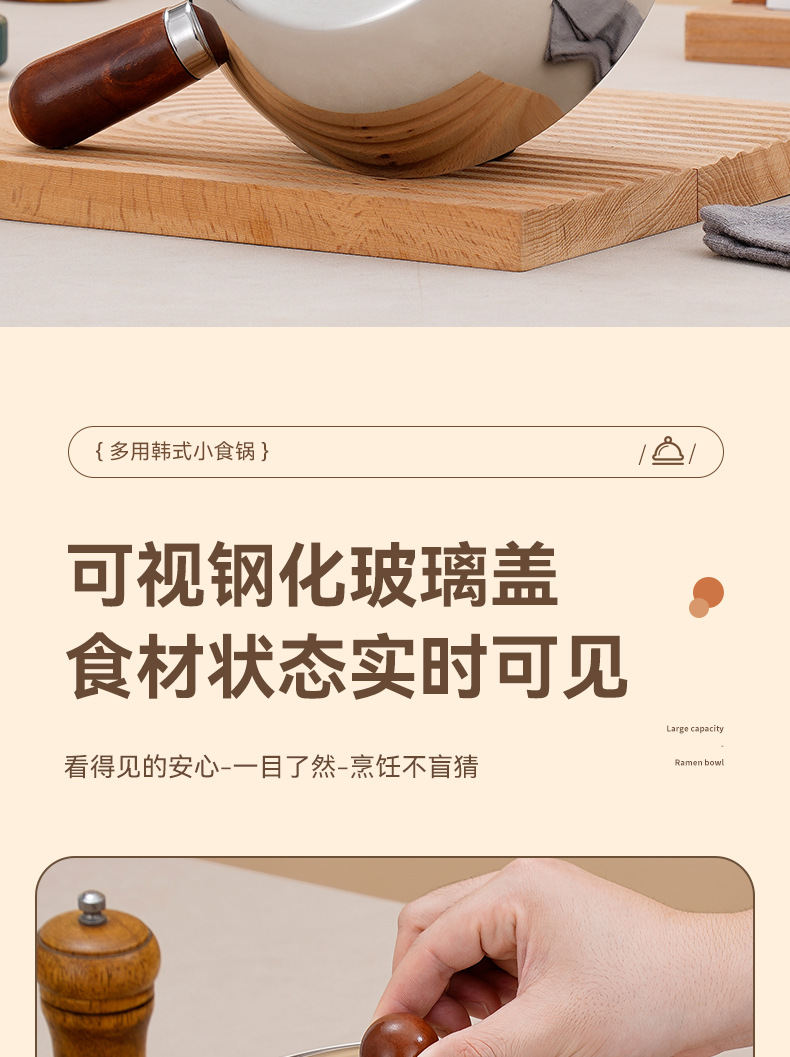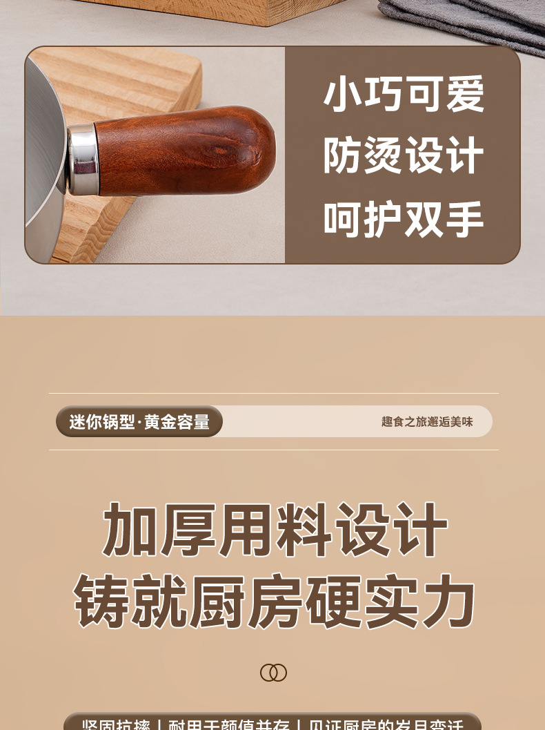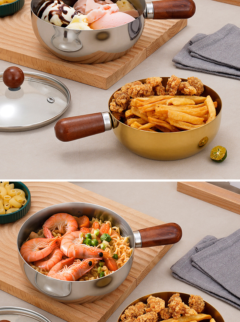 304不锈钢韩式小锅烹饪酱汁料理无涂层木柄牛奶辅食食品级热牛奶