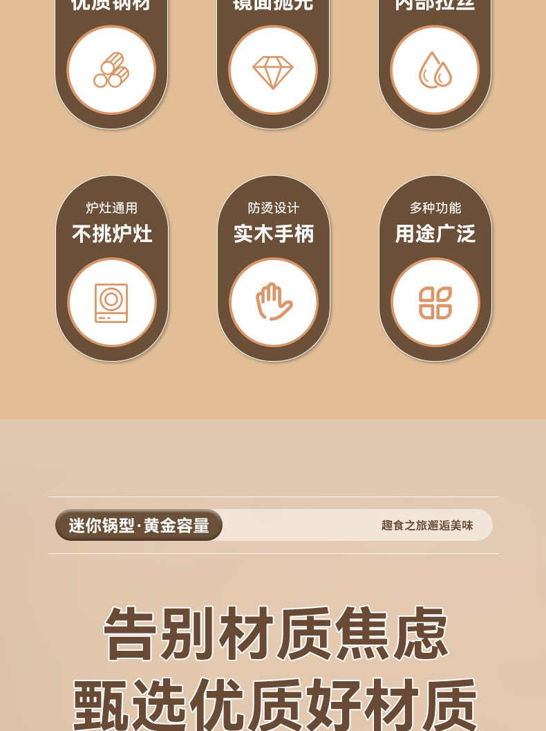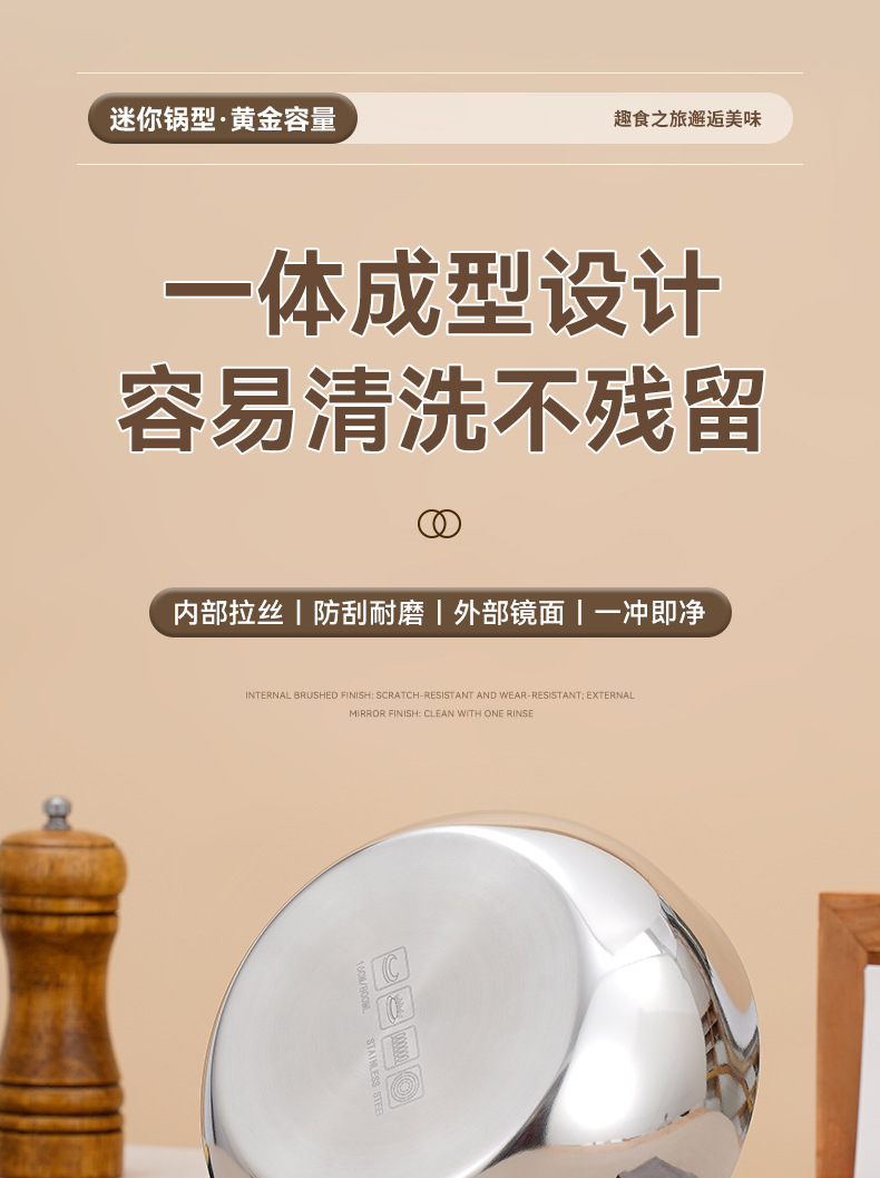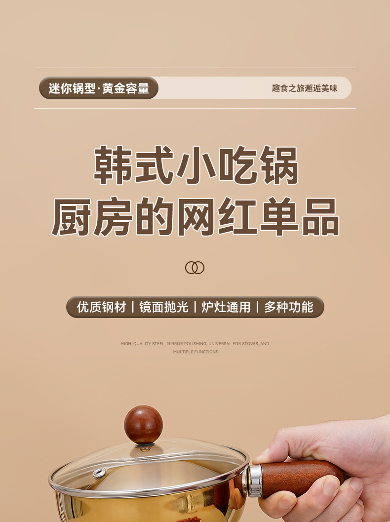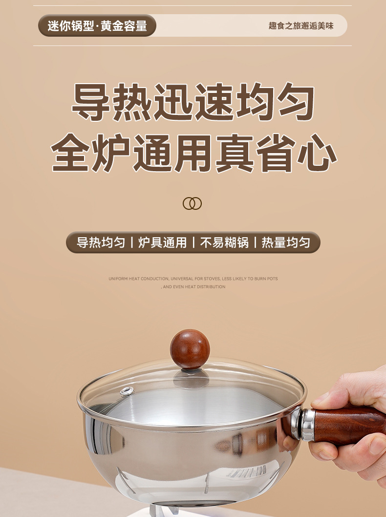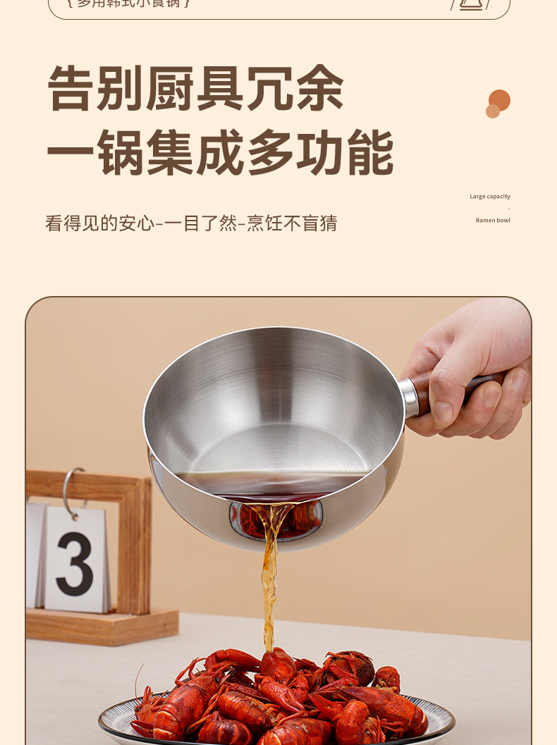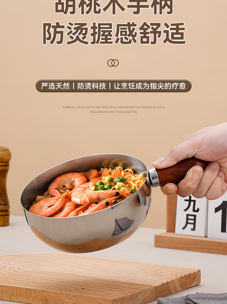 304不锈钢韩式小锅烹饪酱汁料理无涂层木柄牛奶辅食食品级热牛奶