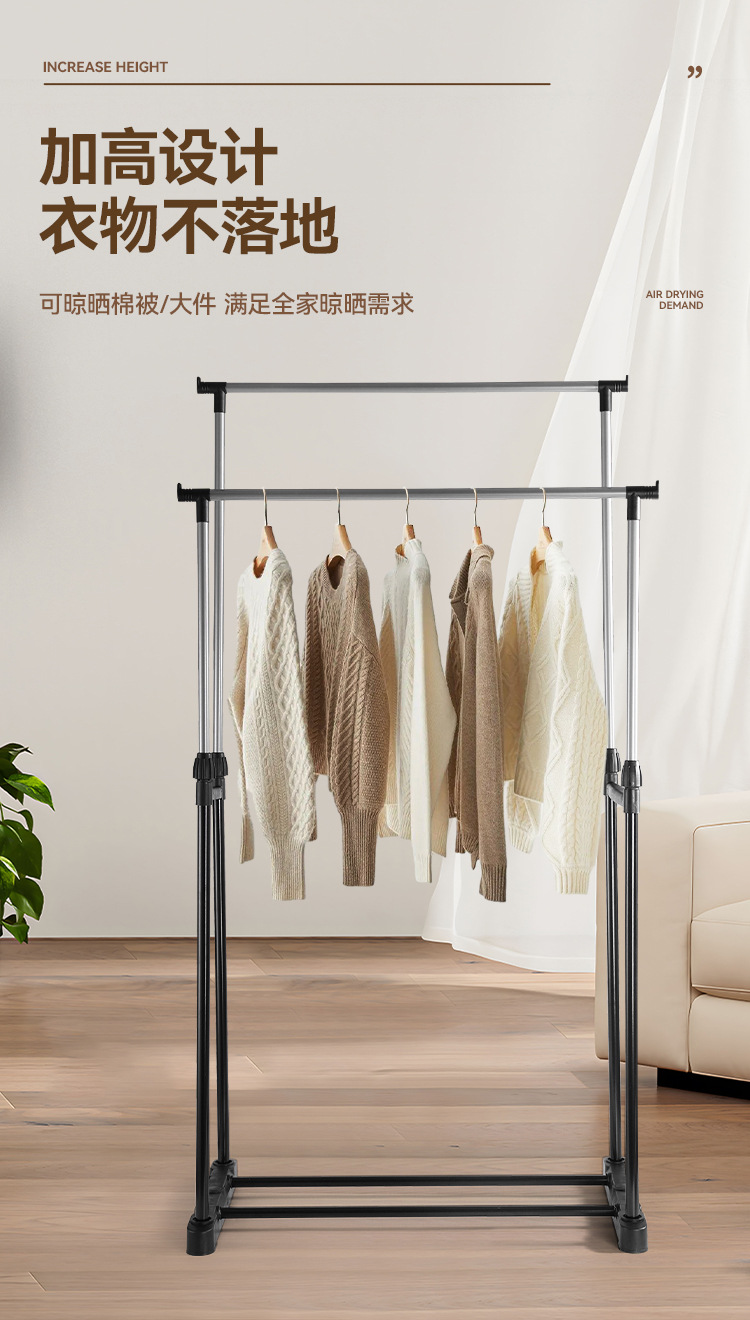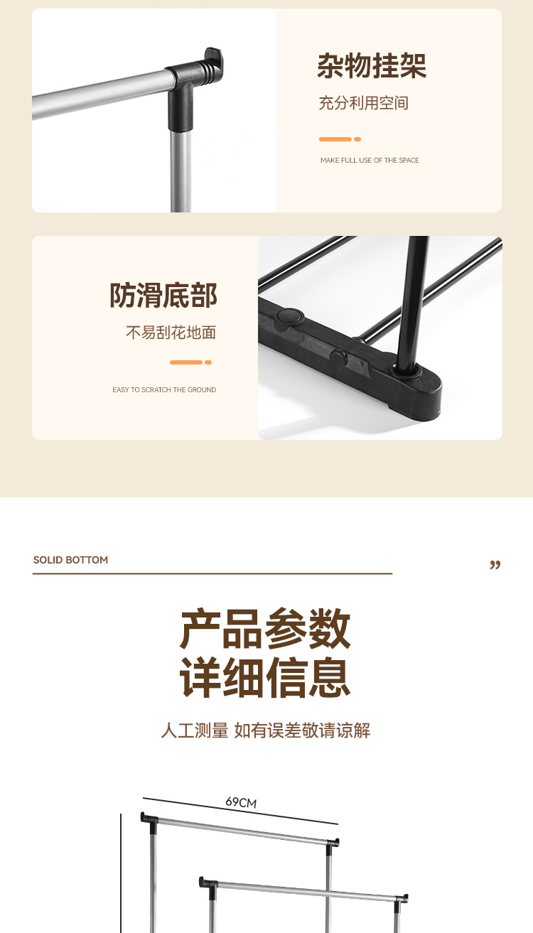 服装店落地衣架家用单双杆晾衣杆室内晒落地式衣架简易晾挂收纳架
