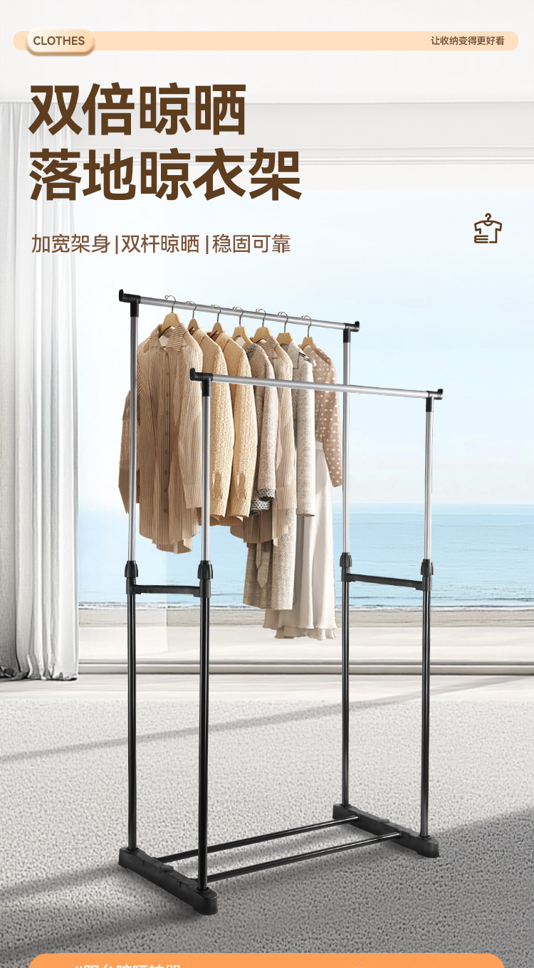 服装店落地衣架家用单双杆晾衣杆室内晒落地式衣架简易晾挂收纳架,批发价,价格:27,厂家直销,服装店落地衣架家用单双杆晾衣杆室内晒落地式衣架简易晾挂收纳架,免费拿样。