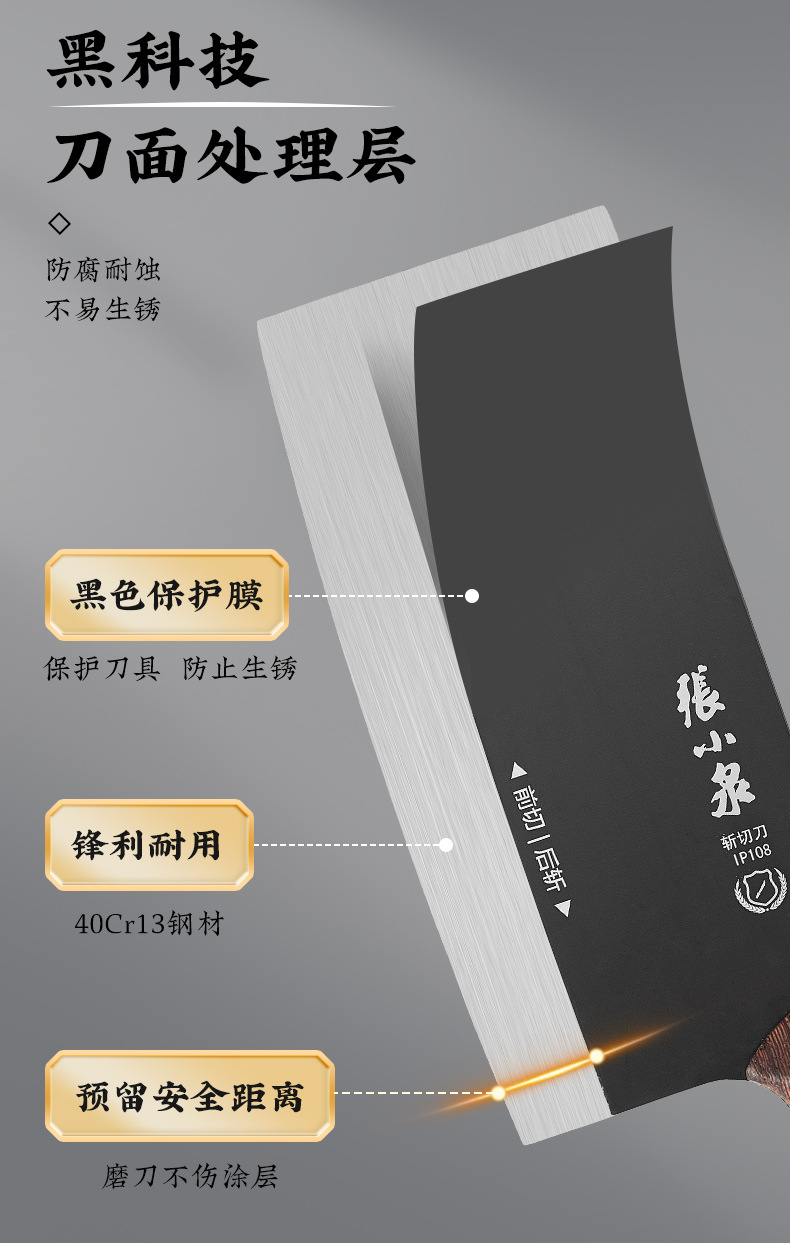 张小泉菜刀家用厨师斩切刀切片刀斩骨刀不锈钢锋利超快正品黑刀