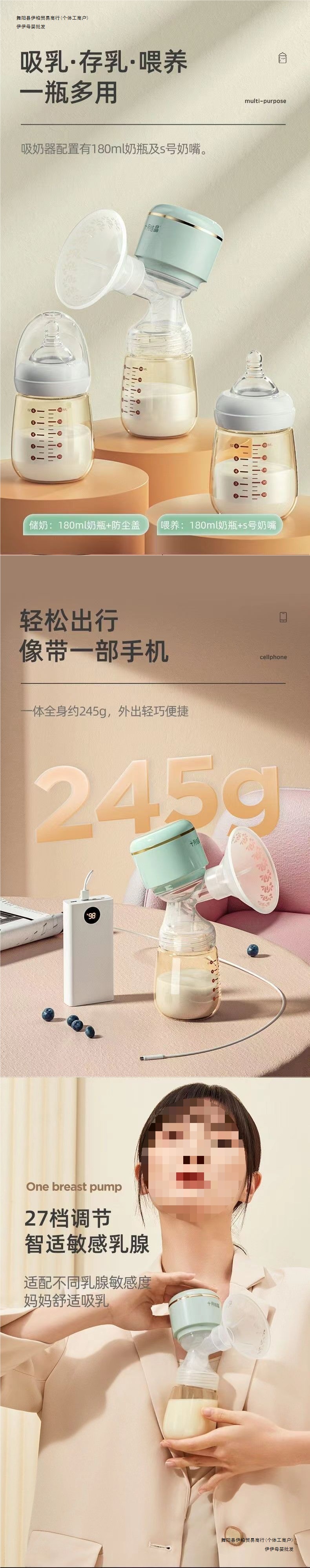 推荐理由:告别涨奶烦恼,呵护乳房健康!这款吸奶器模拟宝宝吮吸模式,无痛催乳、高效集奶。静音设计不扰眠,一机多用超省心,让母乳喂养更轻松、更舒心