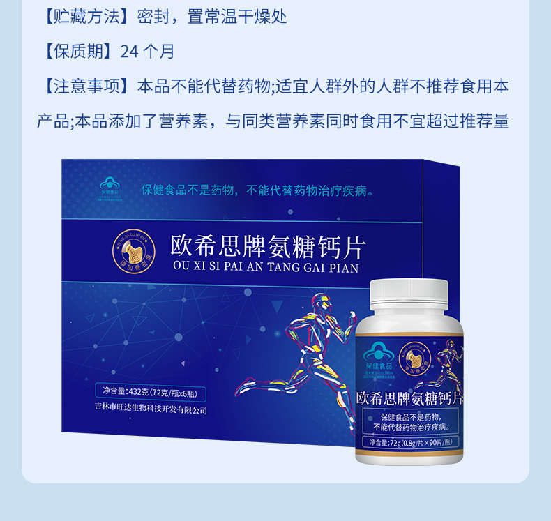 厂家现货欧希思牌氨糖钙片中老年增加骨质 密度钙片保健品钙片
