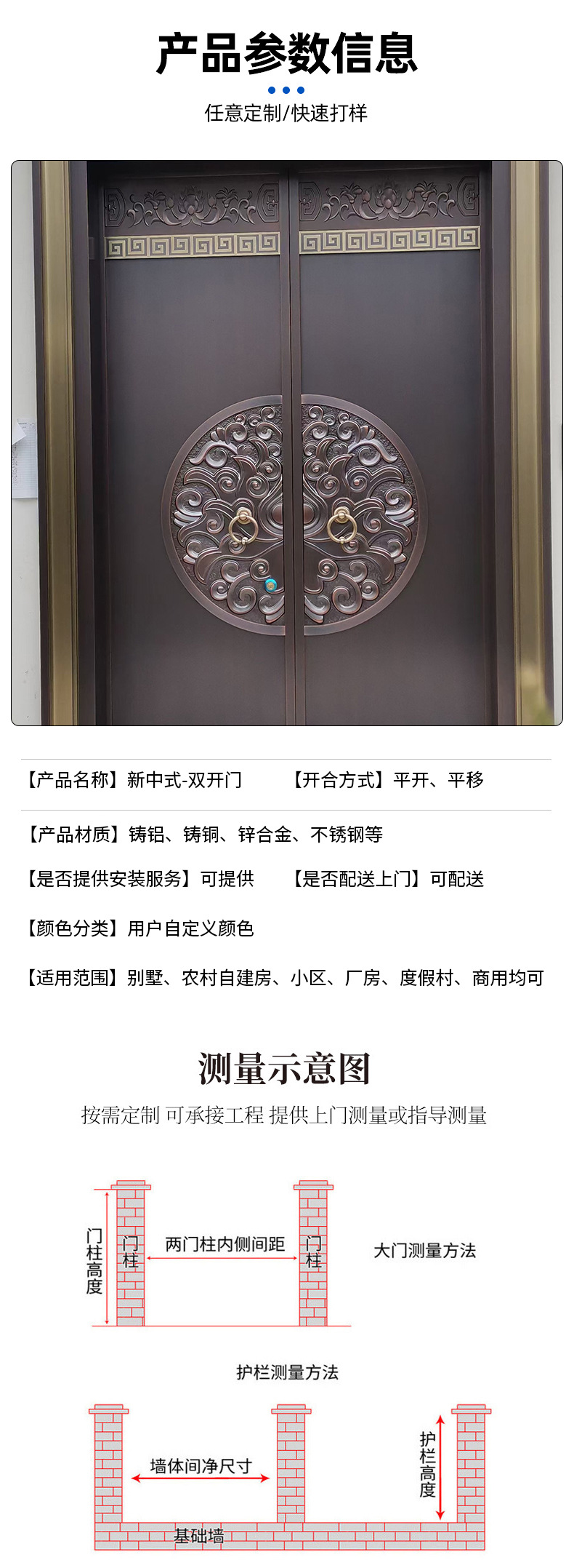 湖北咸宁精雕铸铝庭院大门隨州铸铝门仙桃别墅门潜江铸铝门批发