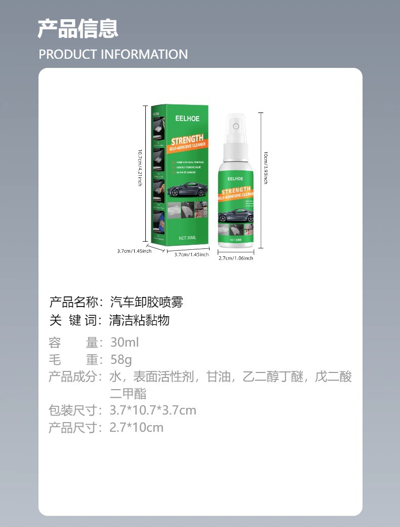 EELHOE汽车卸胶喷雾清洁顽固粘胶不干胶汽车家用不伤漆强力清洗剂